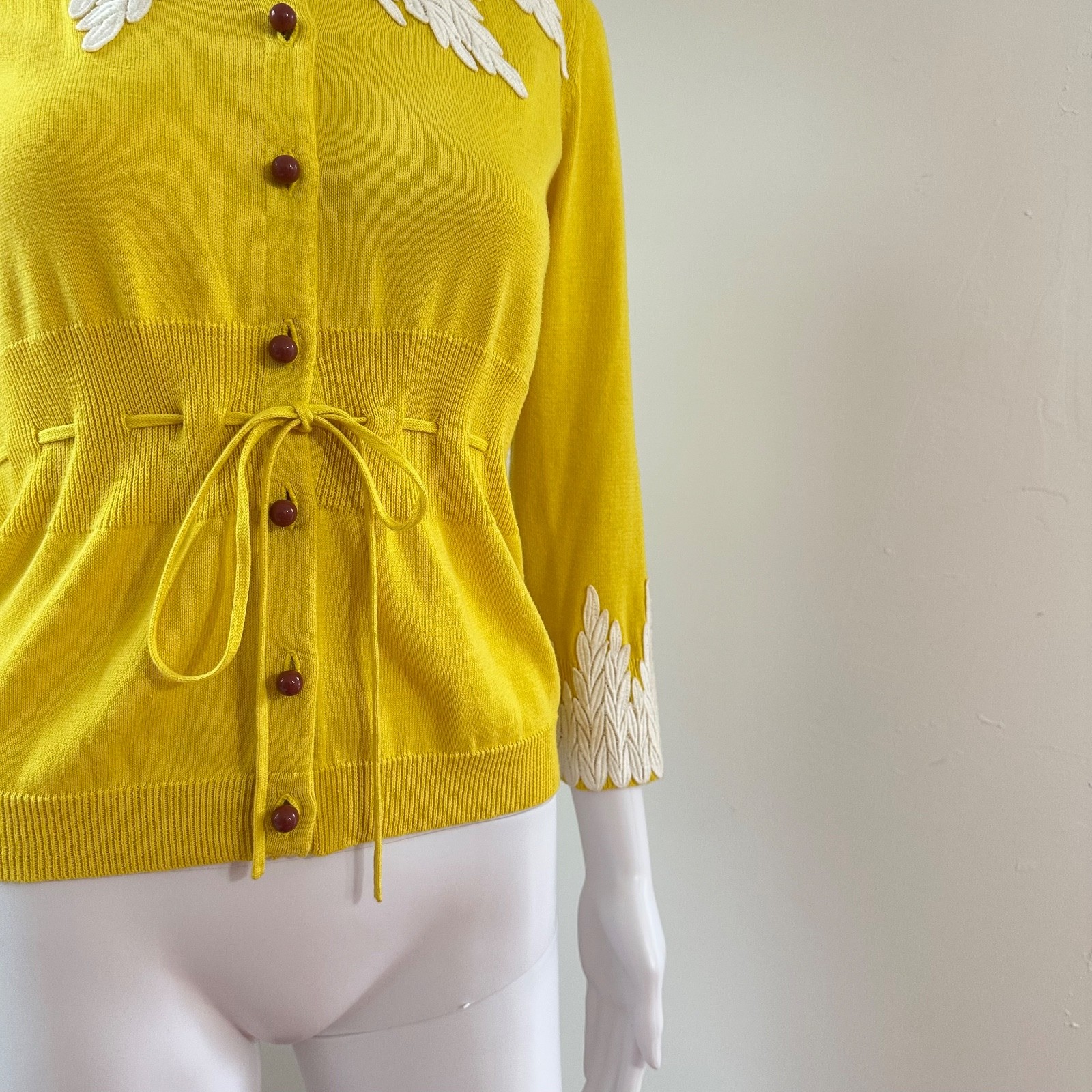 Anthropologie Moth Cardigan Womens Size S Sweater Yellow Embroidered Romantic