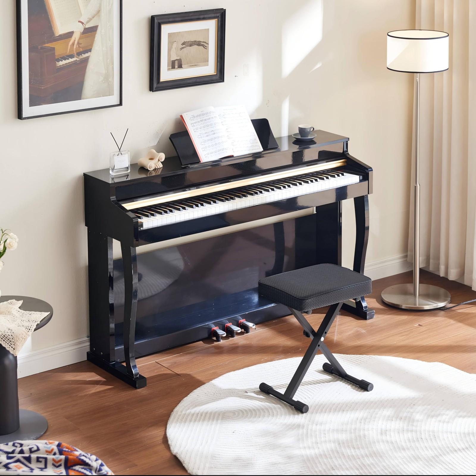 Adjustable Piano Bench, Waterproof Synthetic Leather Padded Seat, X-Style Sto...