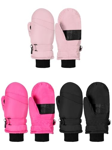 3 Pairs Kids Waterproof Snow Mittens Winter Ski 6-9 Years Black, Pink, Rose Red