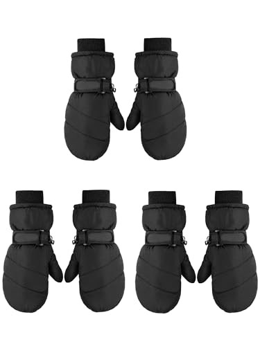 3 Pairs Kids Waterproof Mittens Thicken Toddler Winter Snow 1-3 Years Black