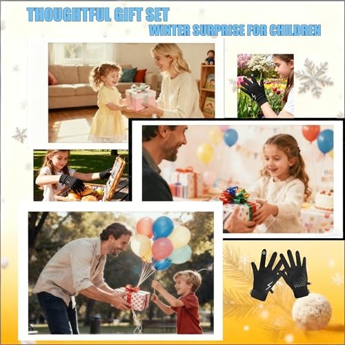 Kids Gloves Winter Boys Girls Gloves Warm Touchscreen Water L 8-10 years Black