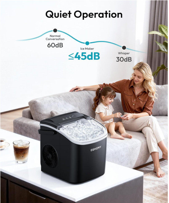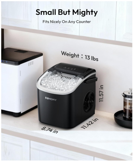 Countertop Ice Maker Machine with Handle,26lbs in 24Hrs,9 Ice Cubes Ready,Black