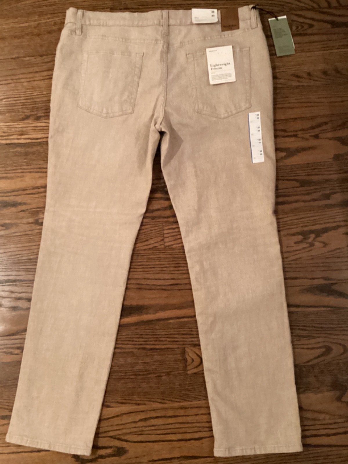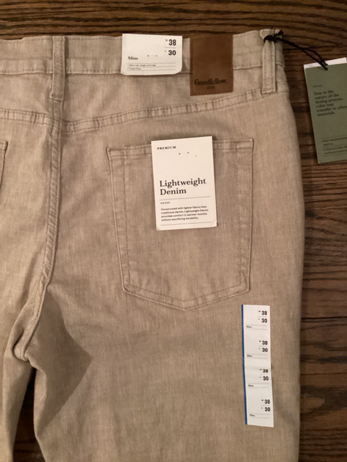 как выглядит NWT Mens Slim Fit Jeans 38x30 Tan Total Flex Lightweight Denim Goodfellow Brand фото