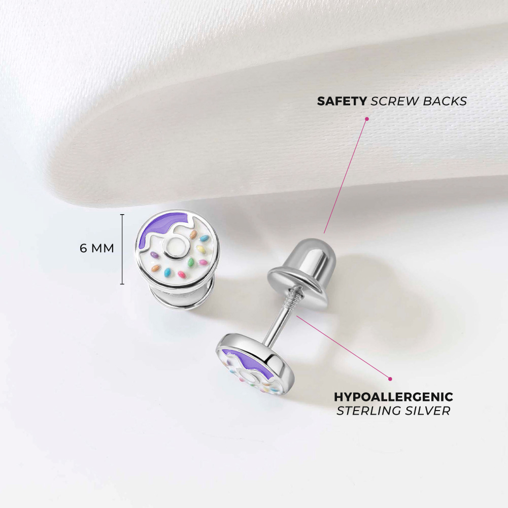 Sprinkles Donut Kids / Children's / Girls Earrings Screw Back - Sterling Silver