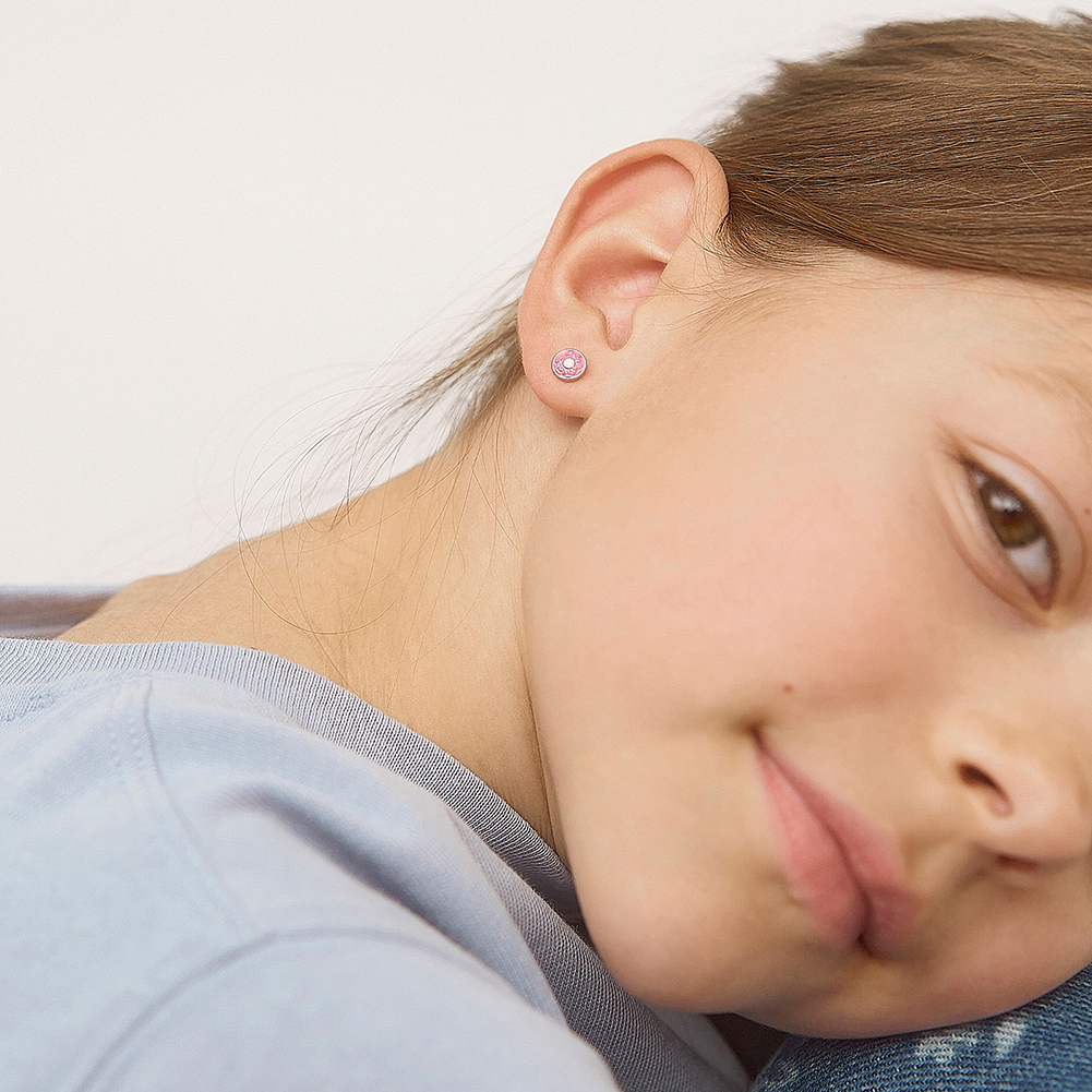 как выглядит Sprinkles Donut Kids / Childrens / Girls Earrings Screw Back - Sterling Silver фото