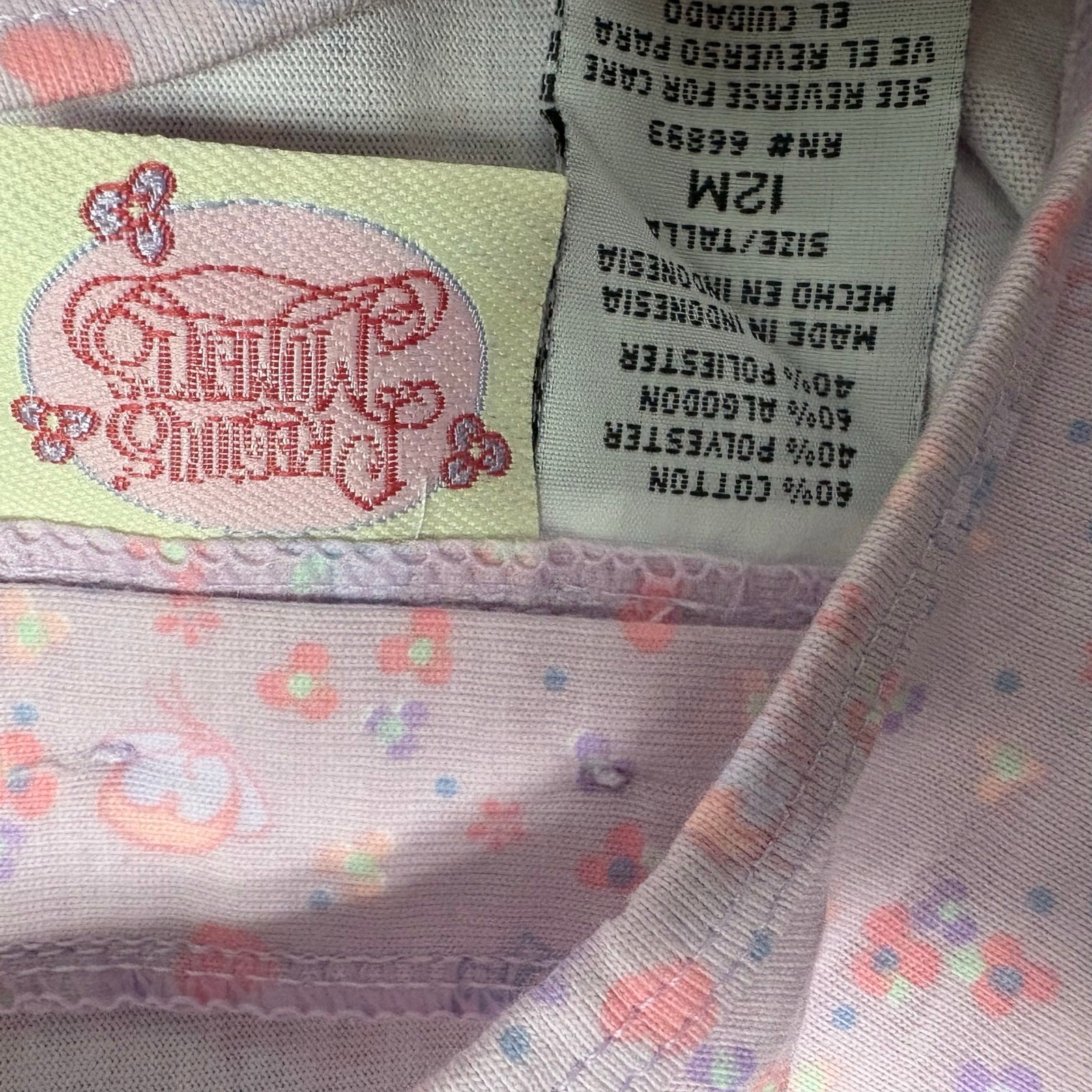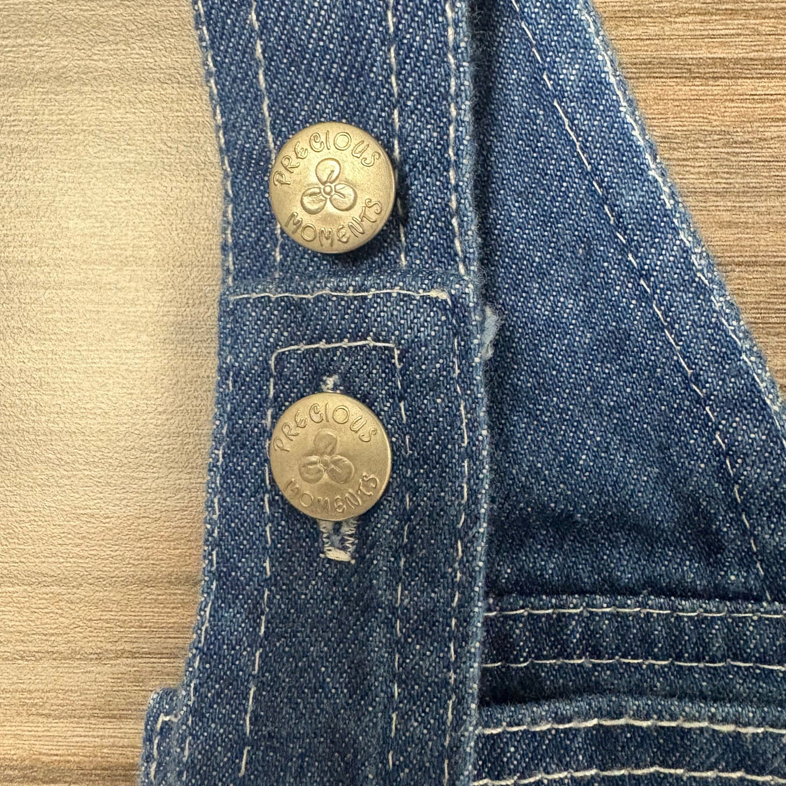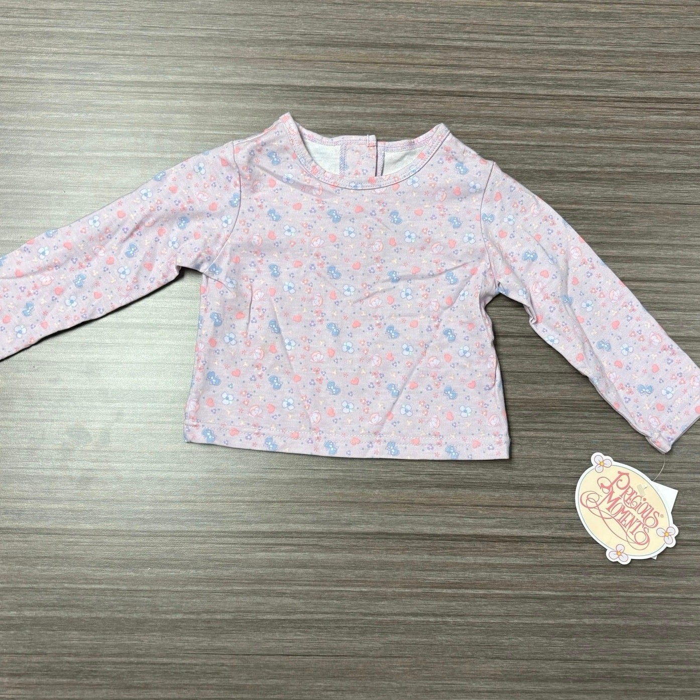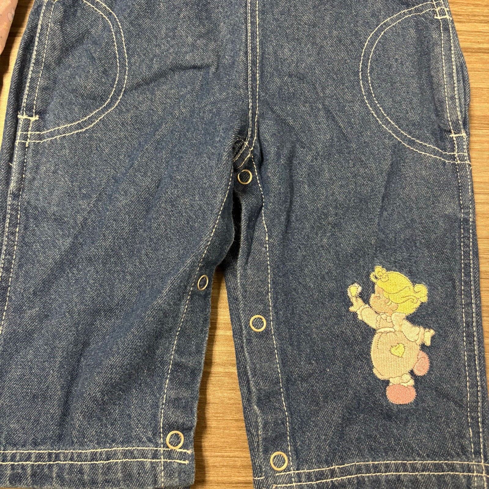 Vintage Precious Moments Baby Girl Outfit 12M Denim Overalls Floral LNG sleeve