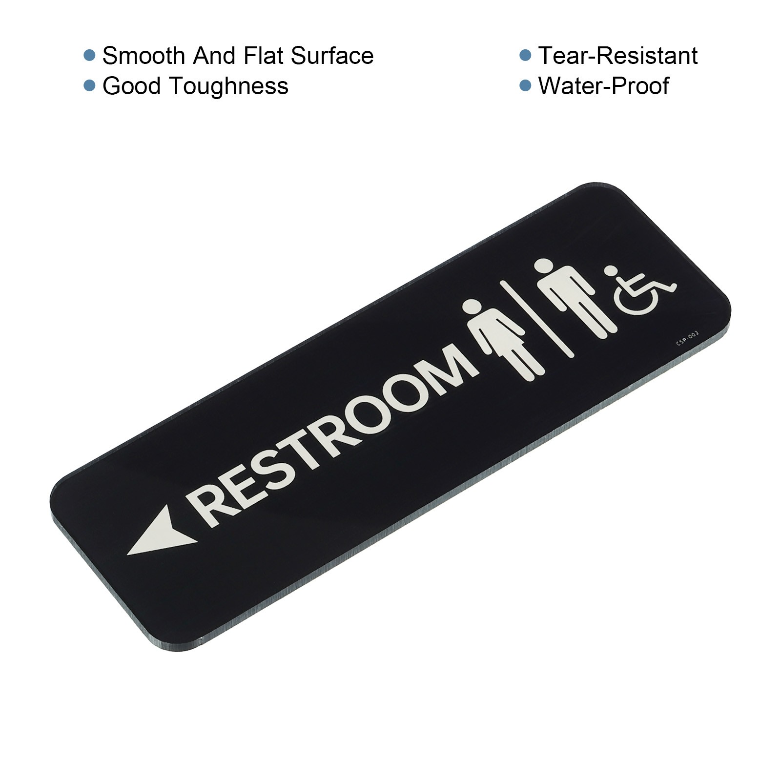 как выглядит Restroom with Left Arrow Sign, Acrylic Interior Door Exterior Sticker, Black фото