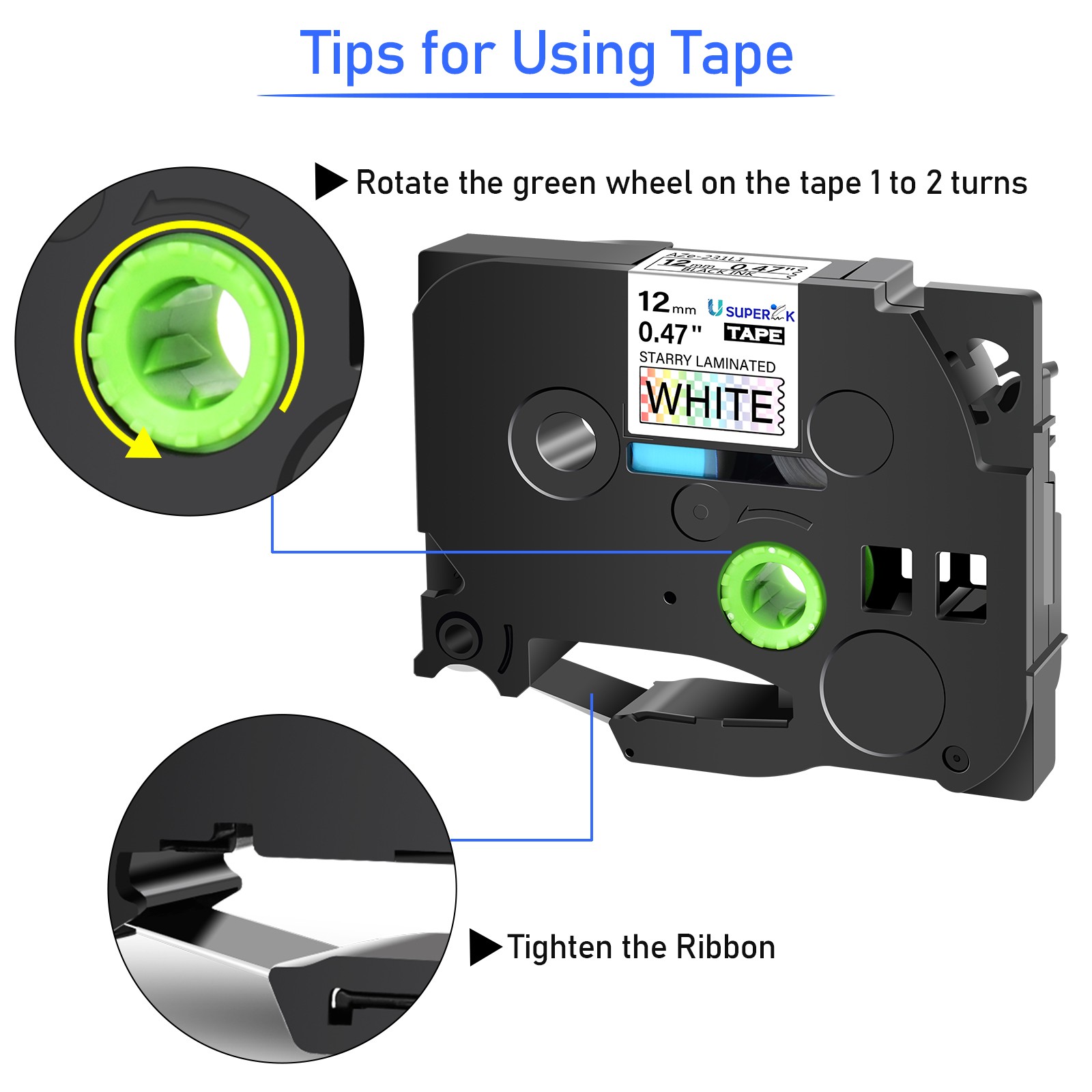 5PK Fit For Brother P-Touch Glitter Rainbow White Laser TZe TZ 231L1 Tape 12mm