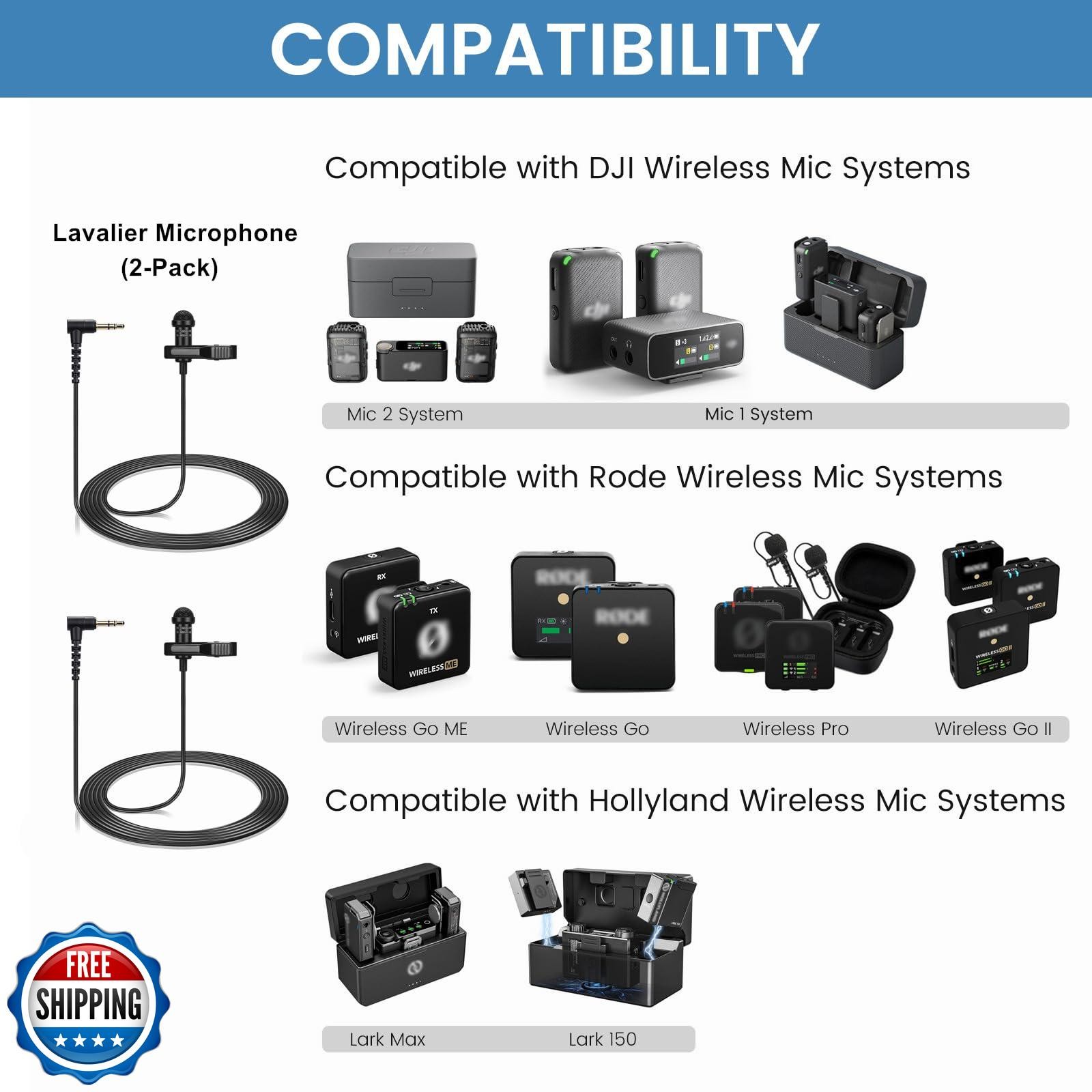 2-Pack Lavalier Microphone Compatible with DJI Mic 2 and Rode Wir