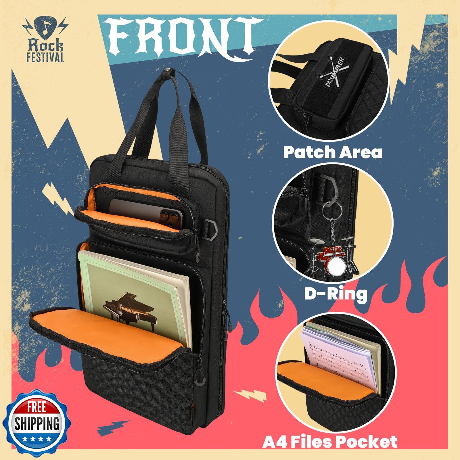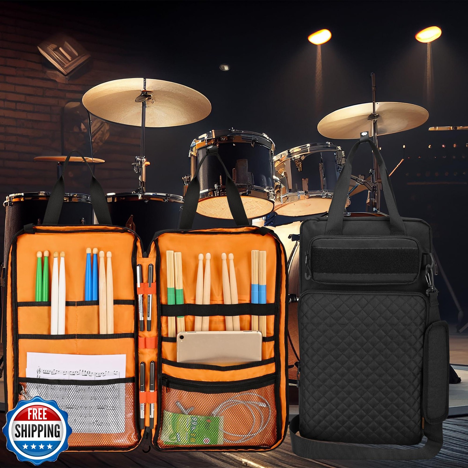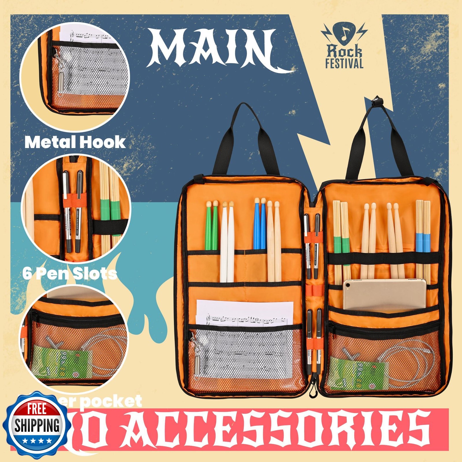как выглядит FURIMETY Drum Stick Bag with Hanging Hooks, Drum Mallet Storage w фото