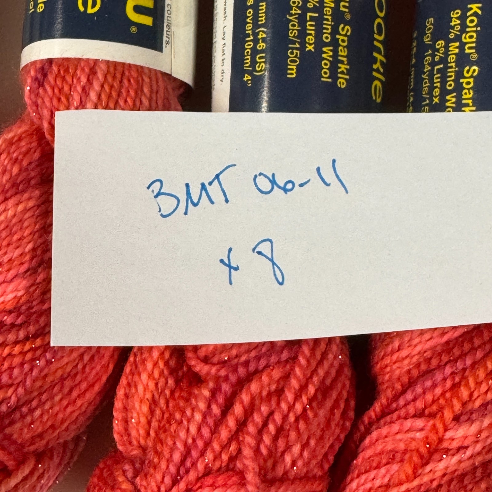 VTG KOIGU KPPPM SPARKLE YARN 8 Skeins Red/Orange 164 yds ea Merino Lurex