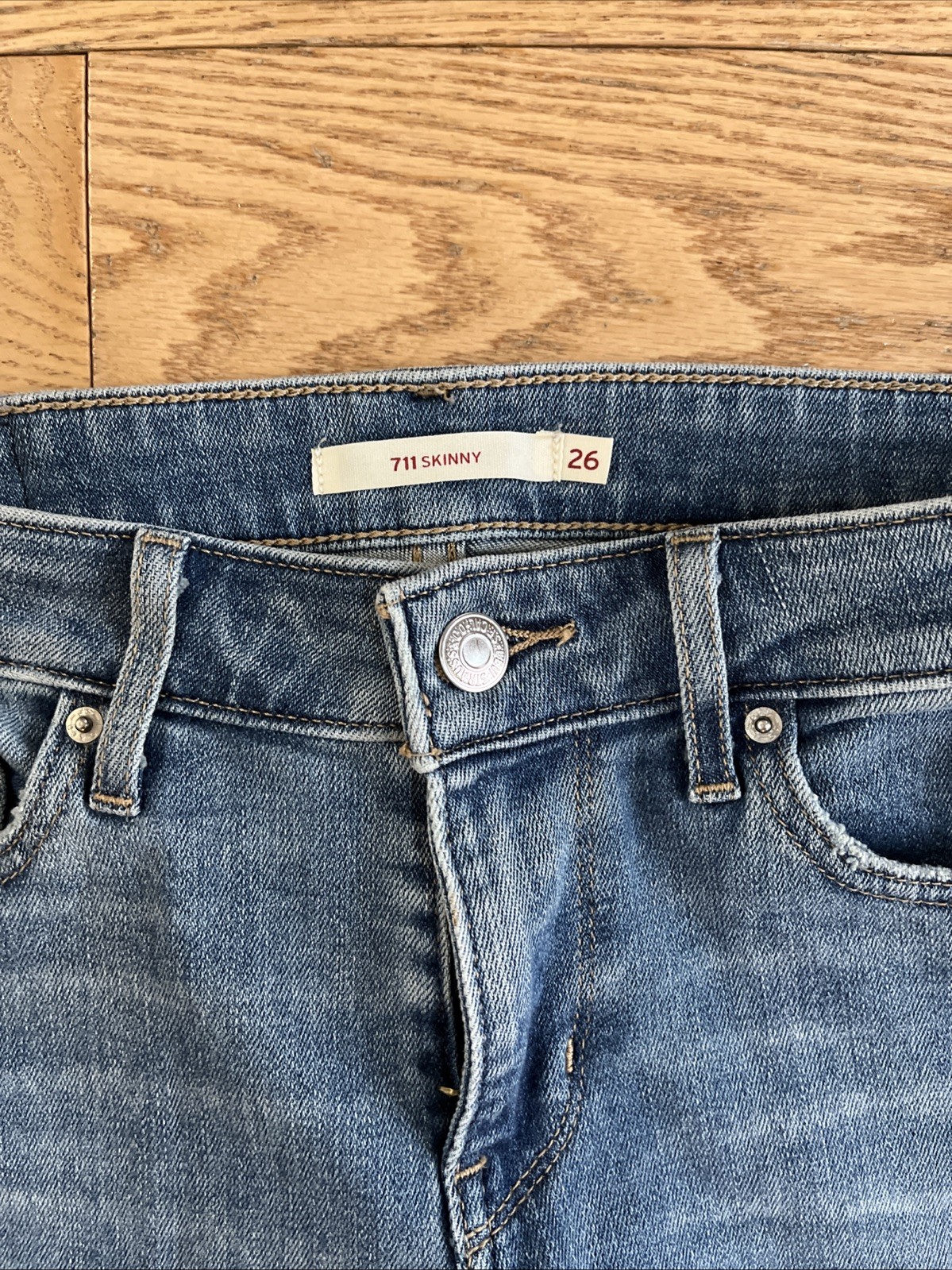 как выглядит Levi s Women s 711 Skinny Jeans Size 26 Distressed Stretch Denim фото