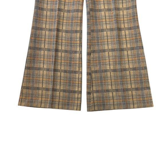 как выглядит JCPenney Vintage Pull on Tan Plaid Wide-Leg Flare Womens Pants M фото