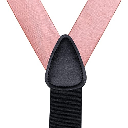 Men's Suspenders and Tie Set Silk Adjustable Elastic Y Braces A Blush Pink