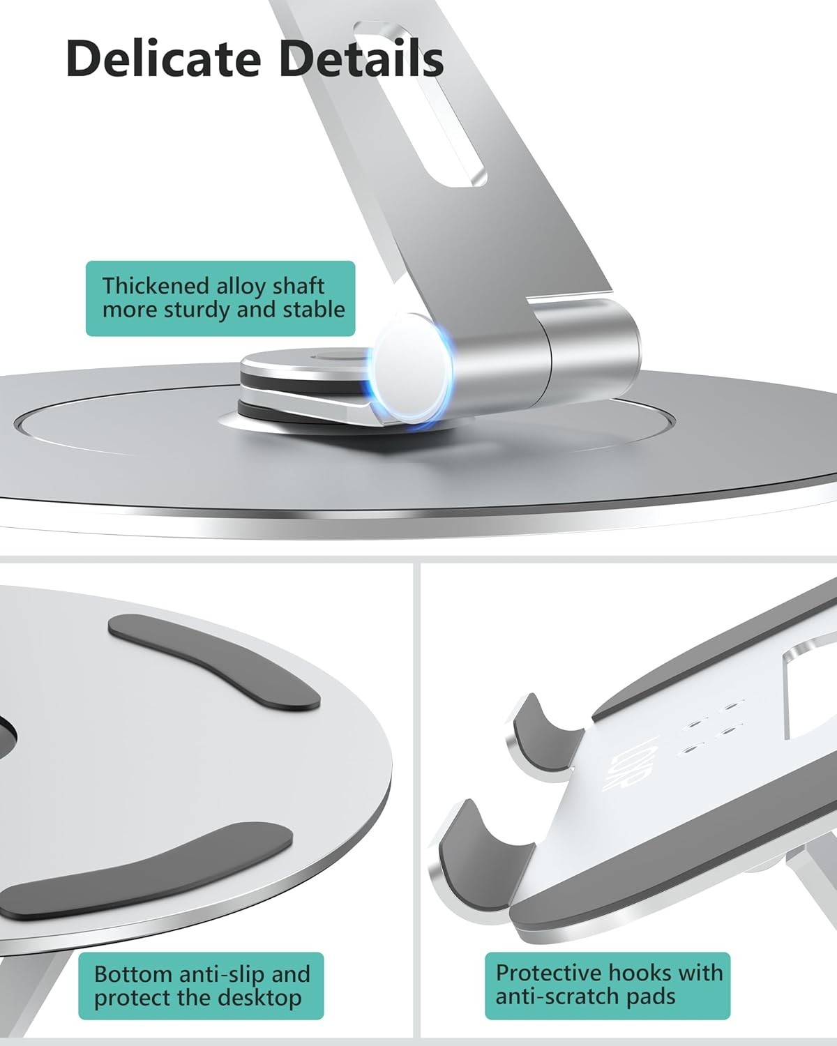 Ergonomic Adjustable Laptop Stand with 360 Rotation Phone Holder - Silver