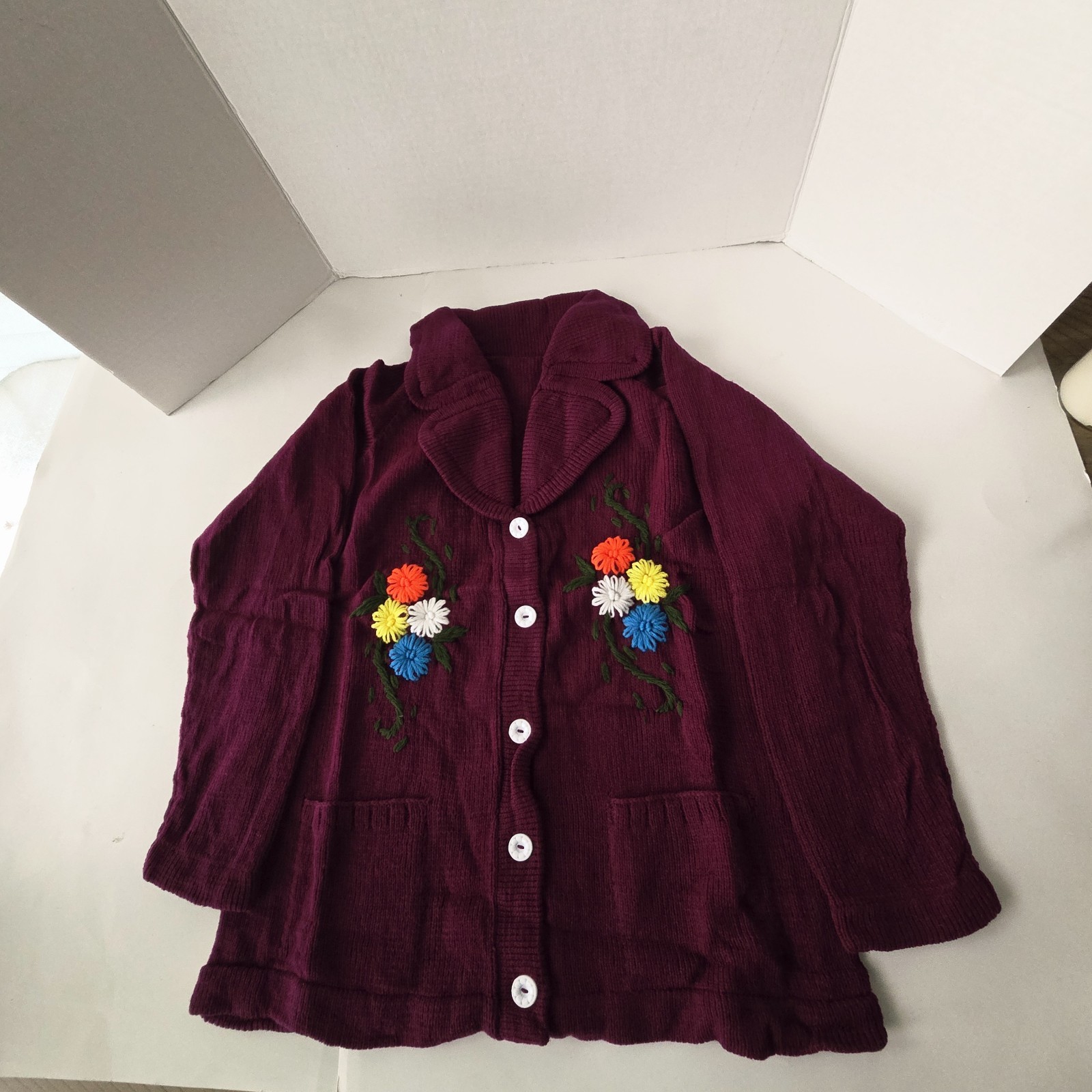 как выглядит Vintage Cardigan Girls Small Floral Hand Embroidered Wool Sweater Philippines фото