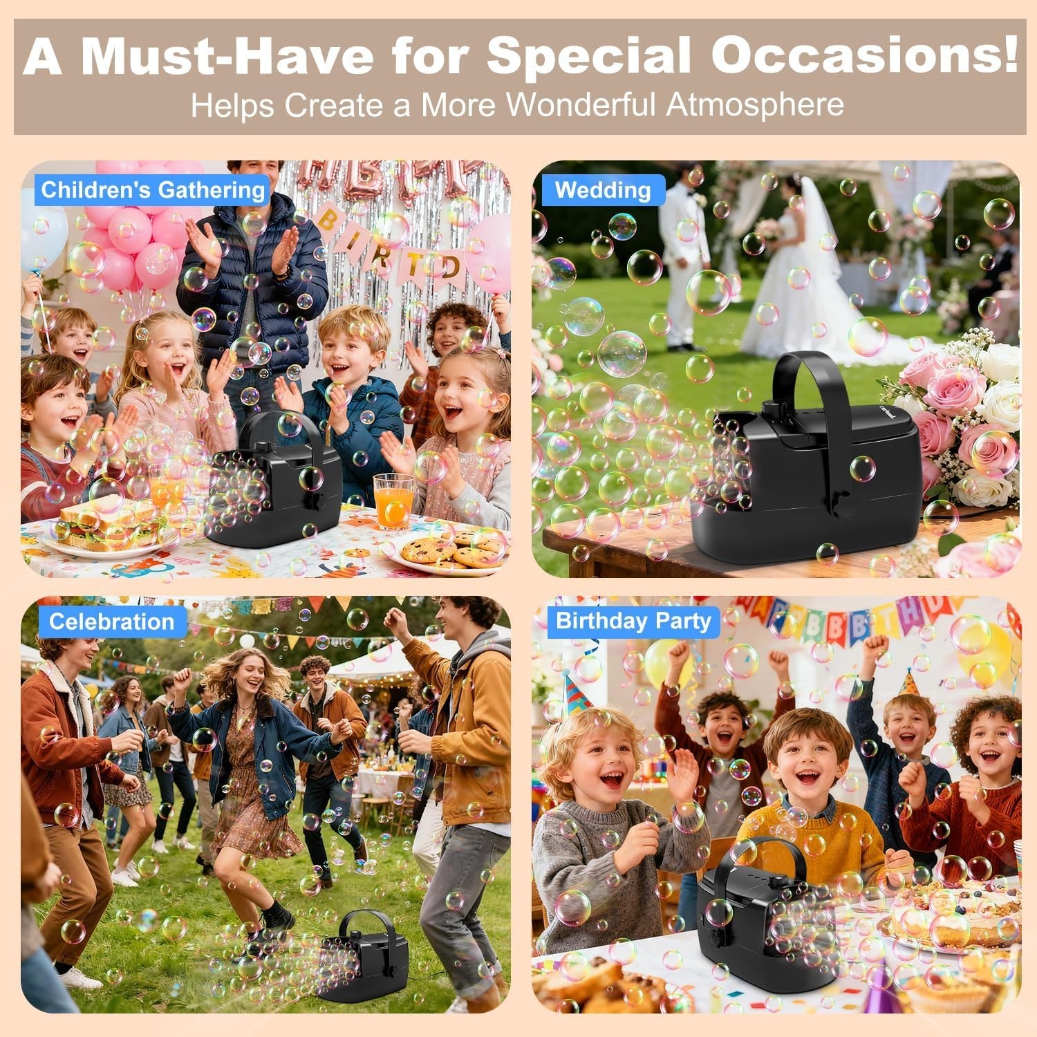 Bubble Machine Durable Automatic Bubble Blower, 18000 Big Bubbles Per Minute...