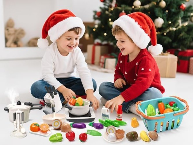 как выглядит Pretend Play Kitchen Toy with Cookware Steam Pressure Pot and Electronic Indu... фото