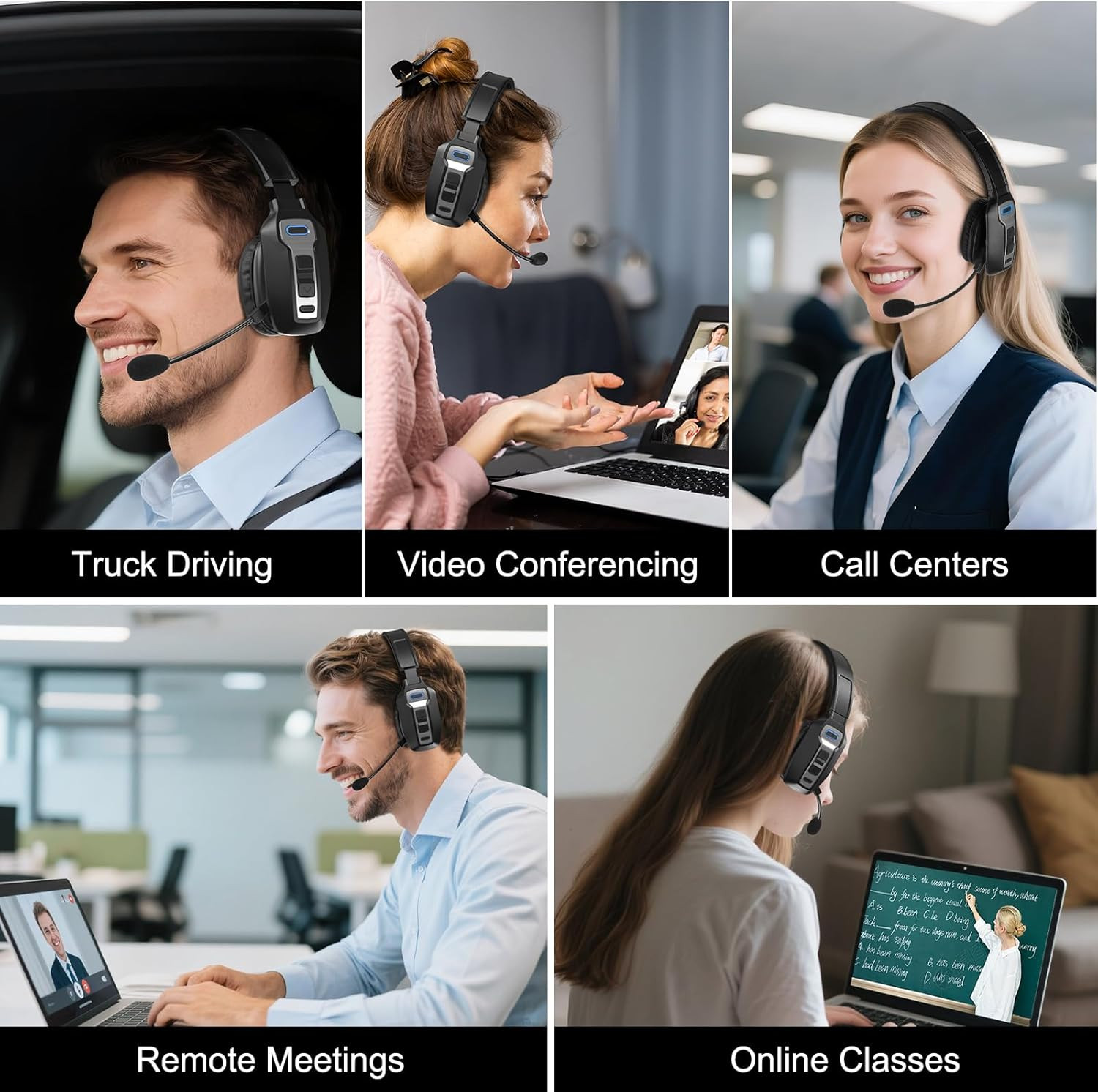 Trucker Headset Wireless Bluetooth 5.2 Al Noise Cancelling Mic For Phones PC