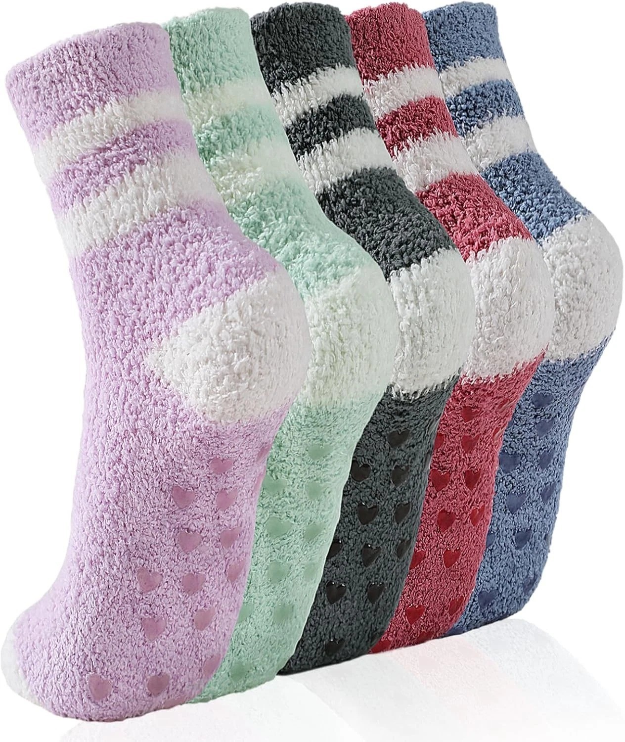 5 Pairs Fuzzy Socks for Women, Winter Warm Womens Super Soft Cozy Socks