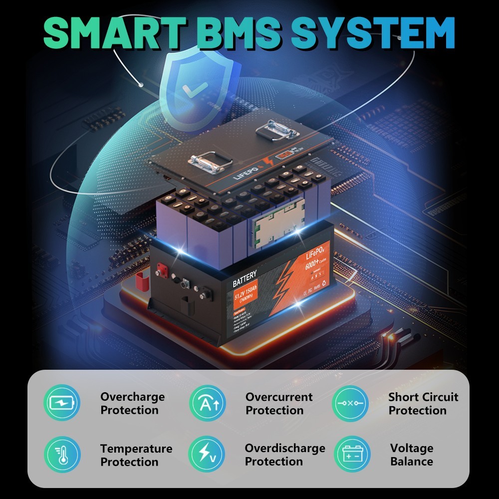 48V 300Ah Lithium Golf Cart Battery 200A BMS 6000 Cycles APP Charger Monitor Set