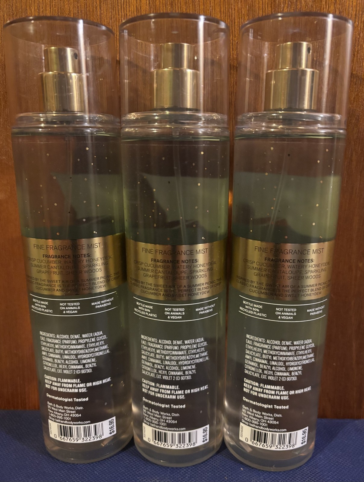 как выглядит Bath Body Works CUCUMBER MELON Fine Fragrance Mist - 8 fl oz Spray - 3 Bottles фото