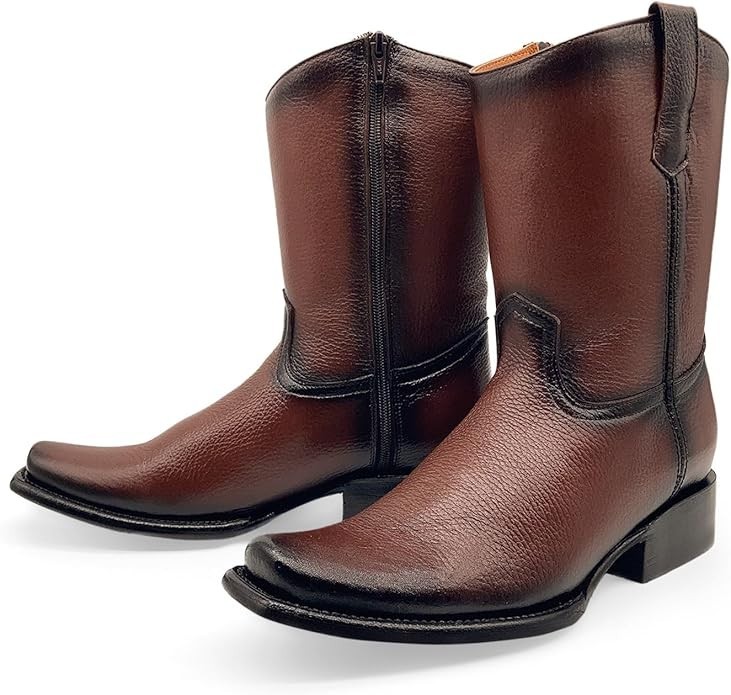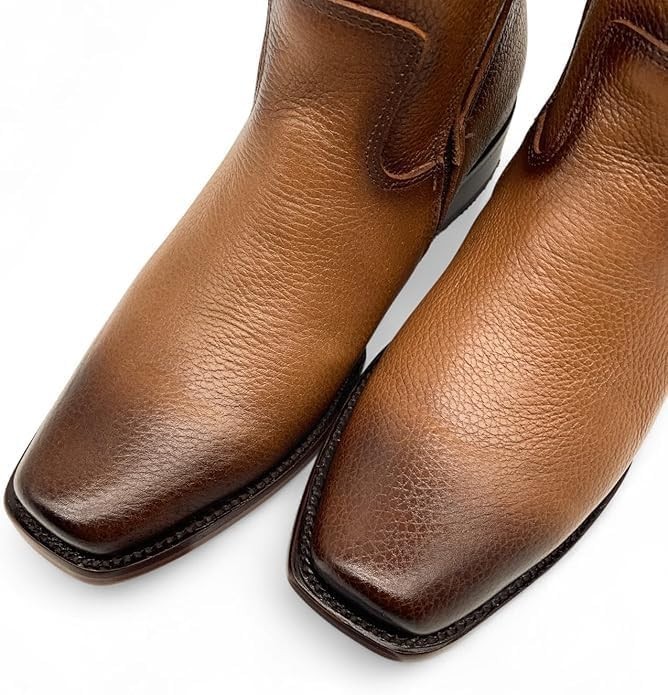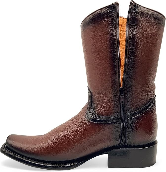 Genuine Leather Cuadra Style Dubai Square Toe Cowboy Western Boots Zipper -Camel