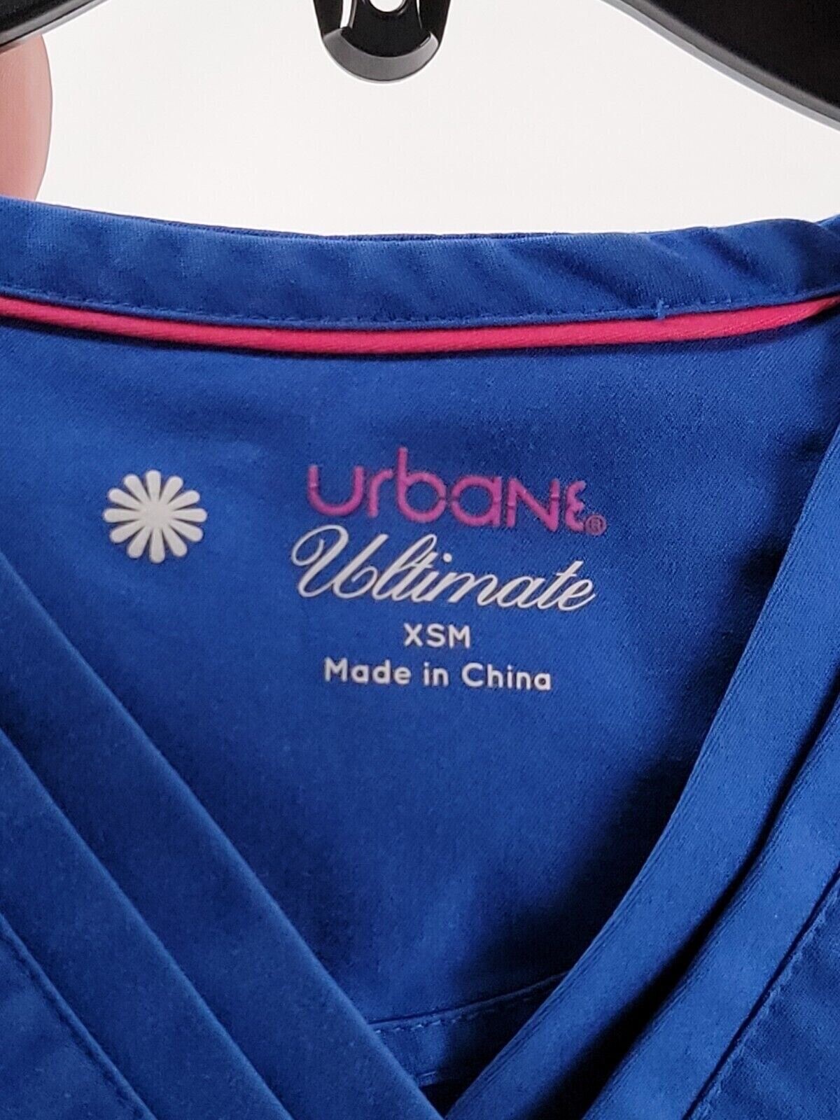 Urbane Ultimate Scrub Top Womens Size XSM Color Blue Pockets Short Sleeve V Neck
