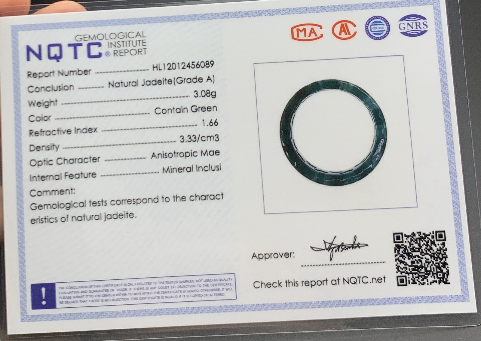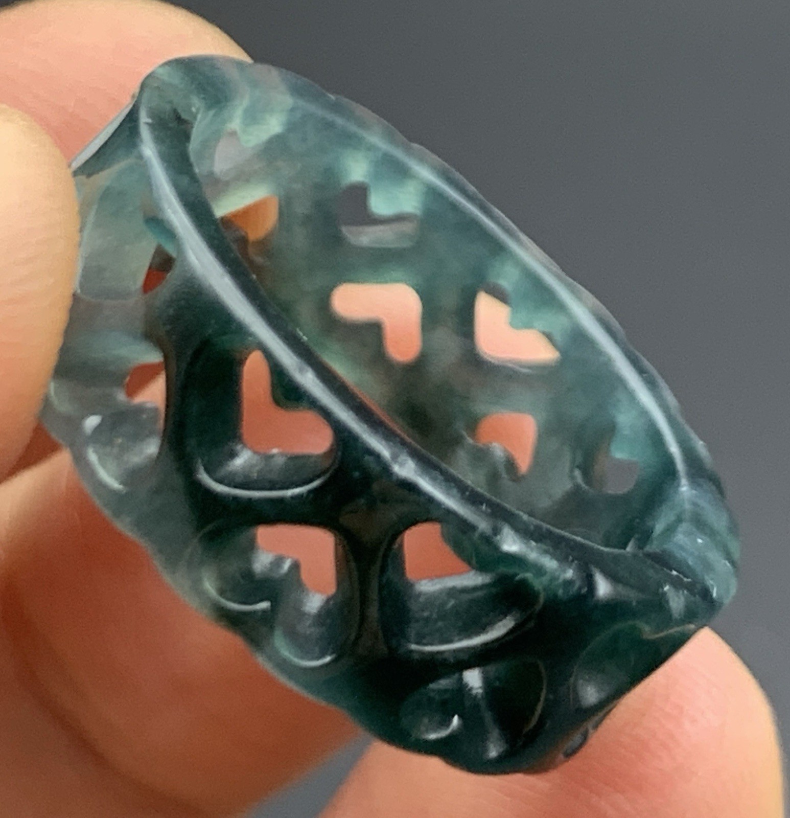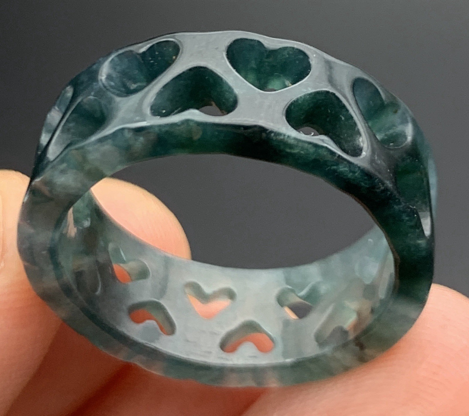 Video Certified Green A Jadeite Jade Heart Round Circle Ring NO. 9 420076