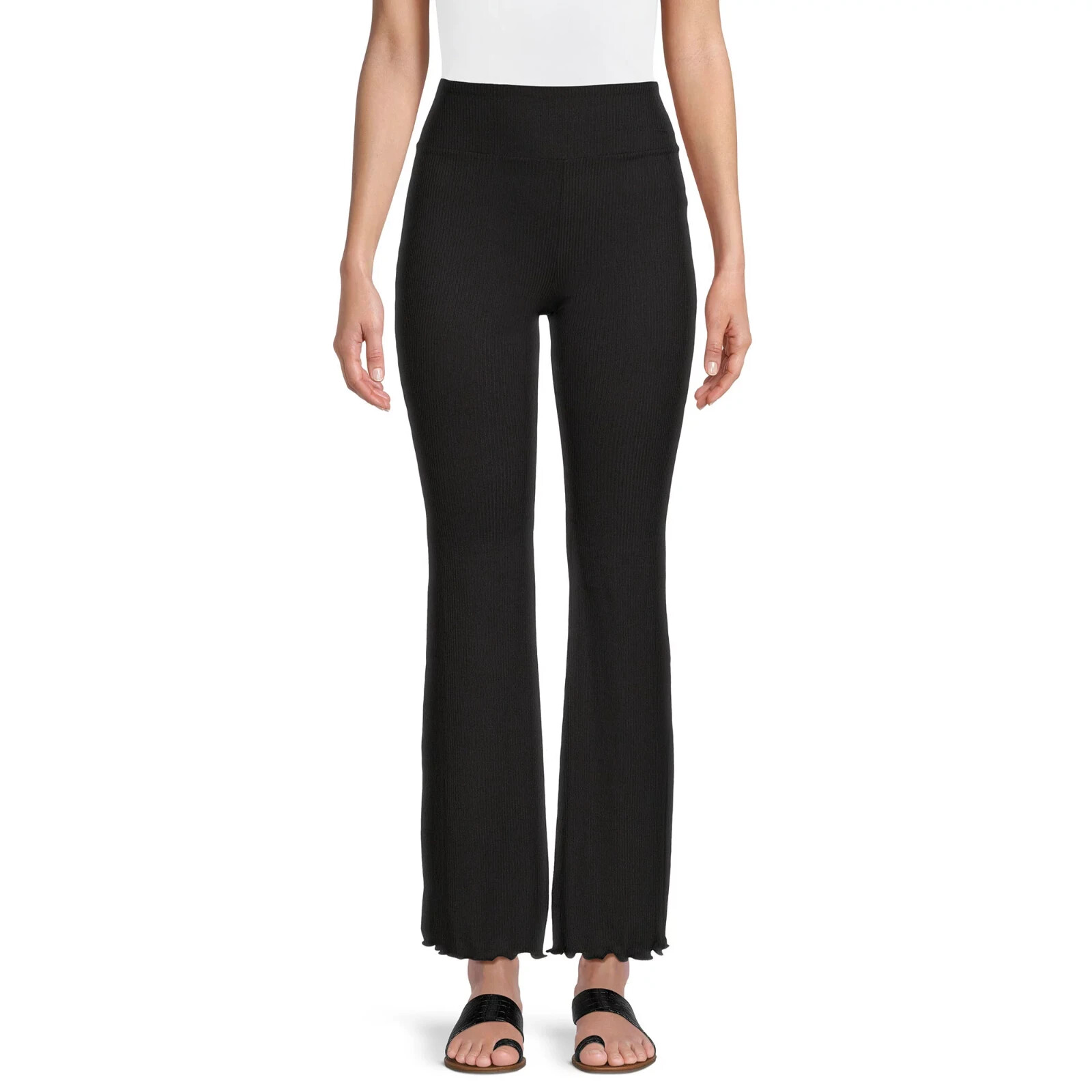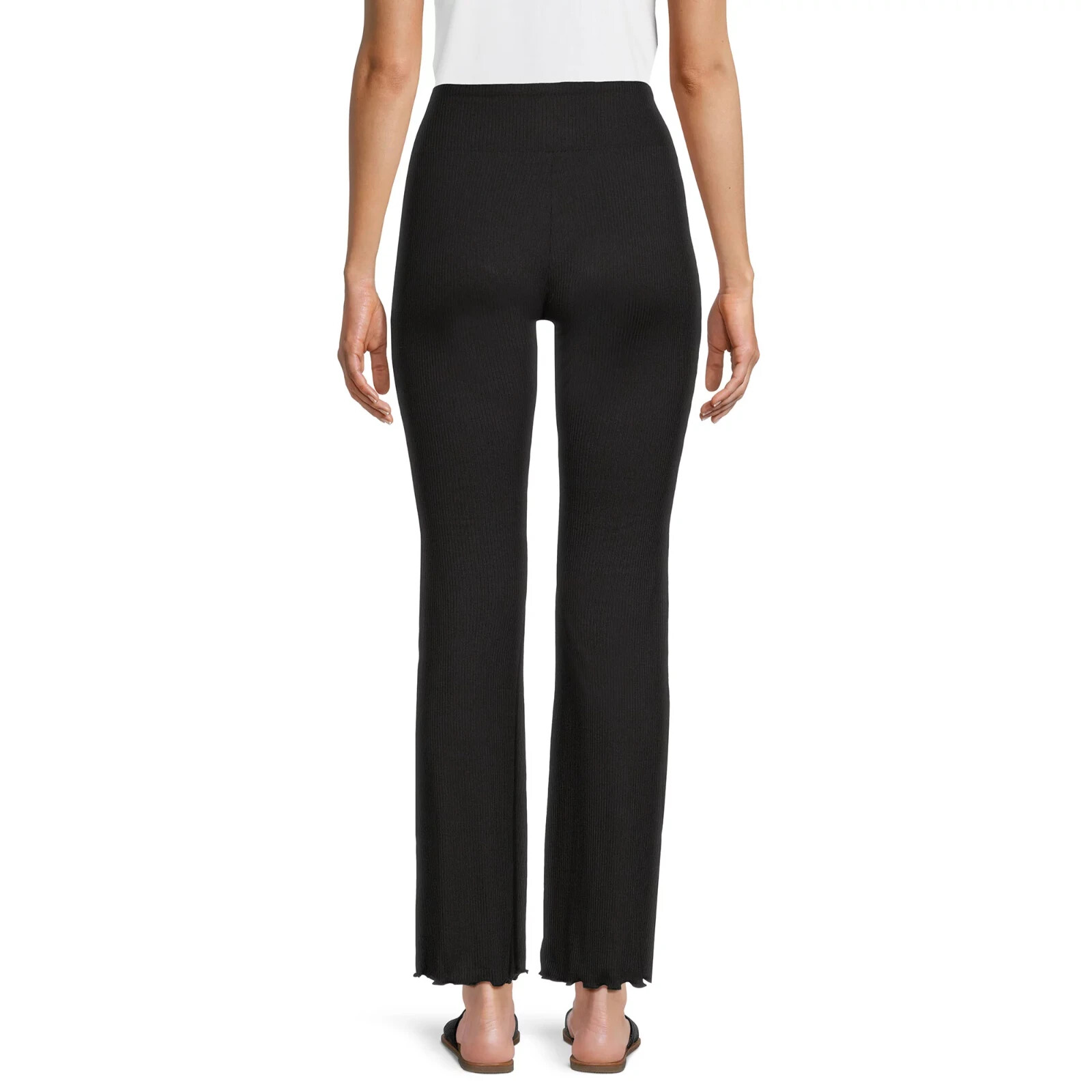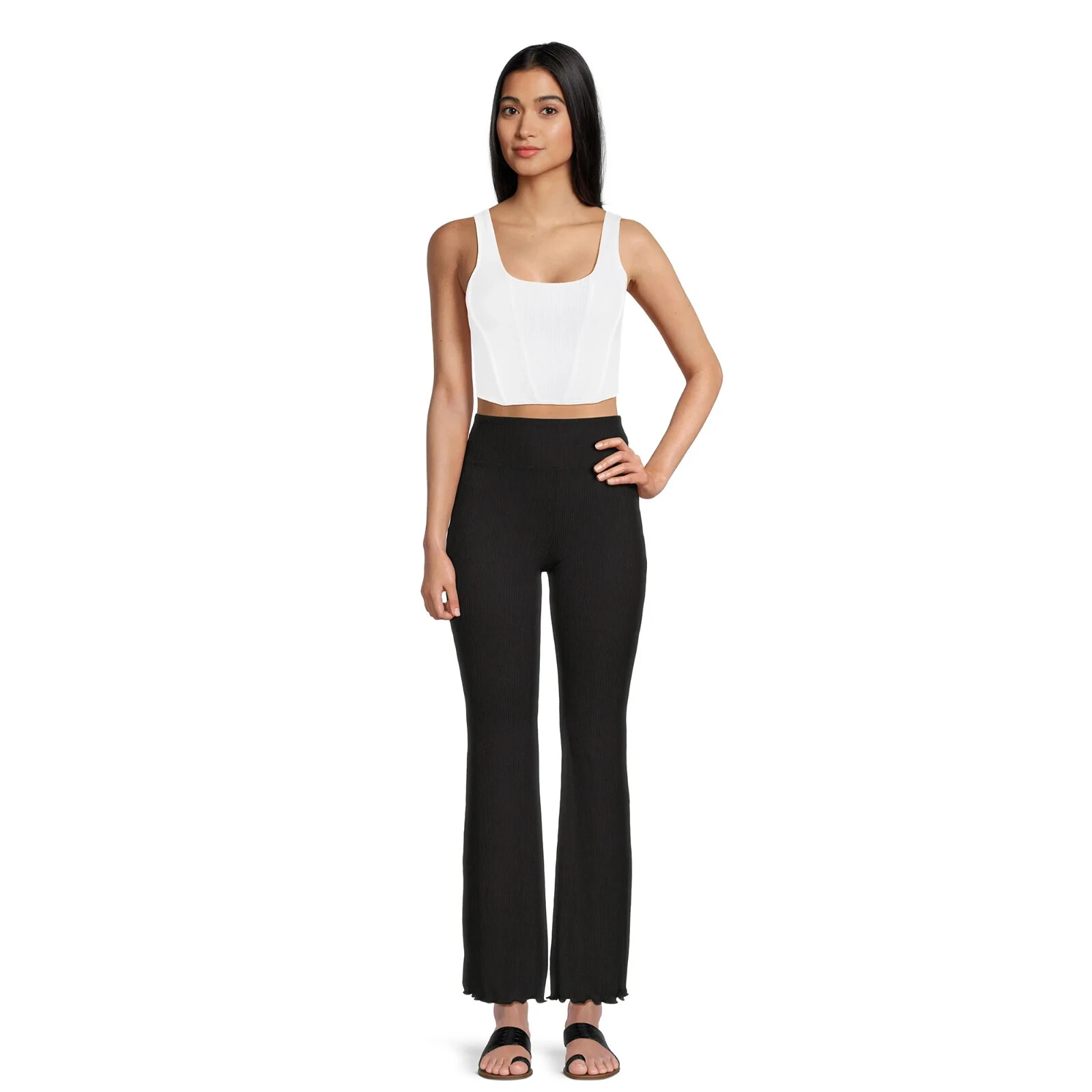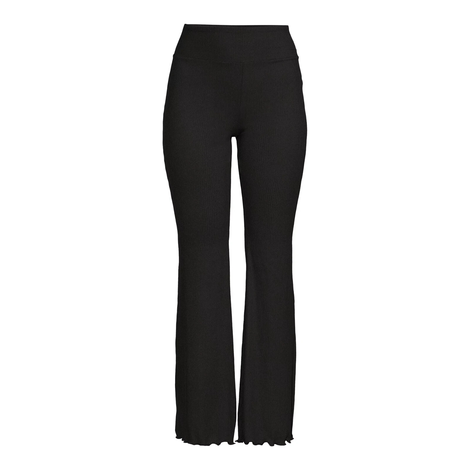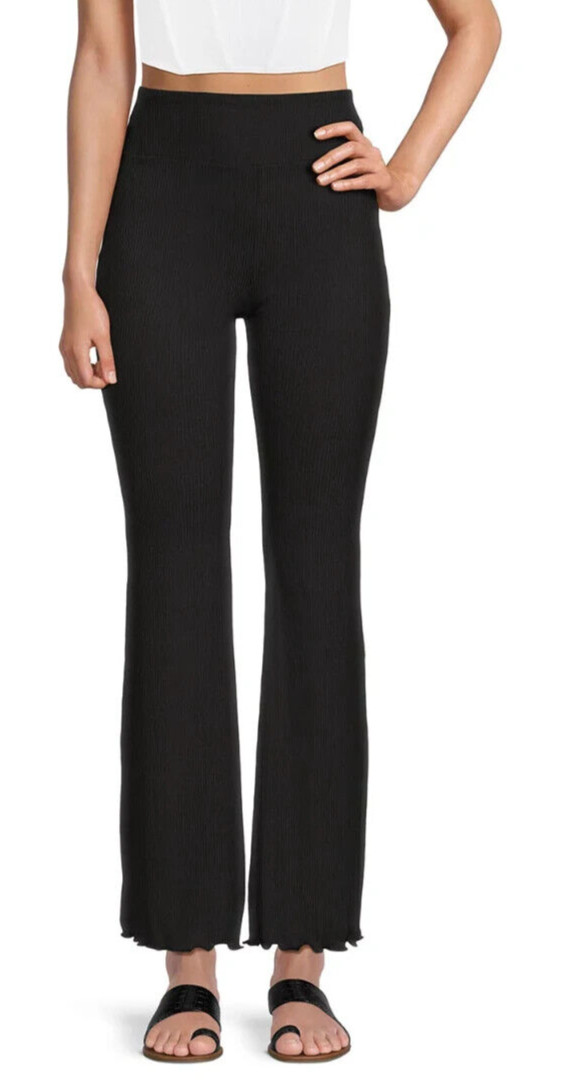 No Boundaries Women's XL 15-17 Juniors Ribbed Flare Lettuce Hem Pants Black