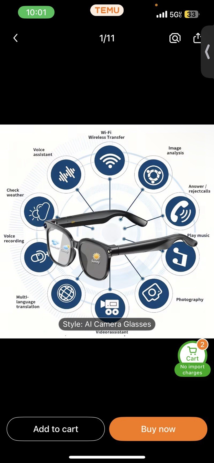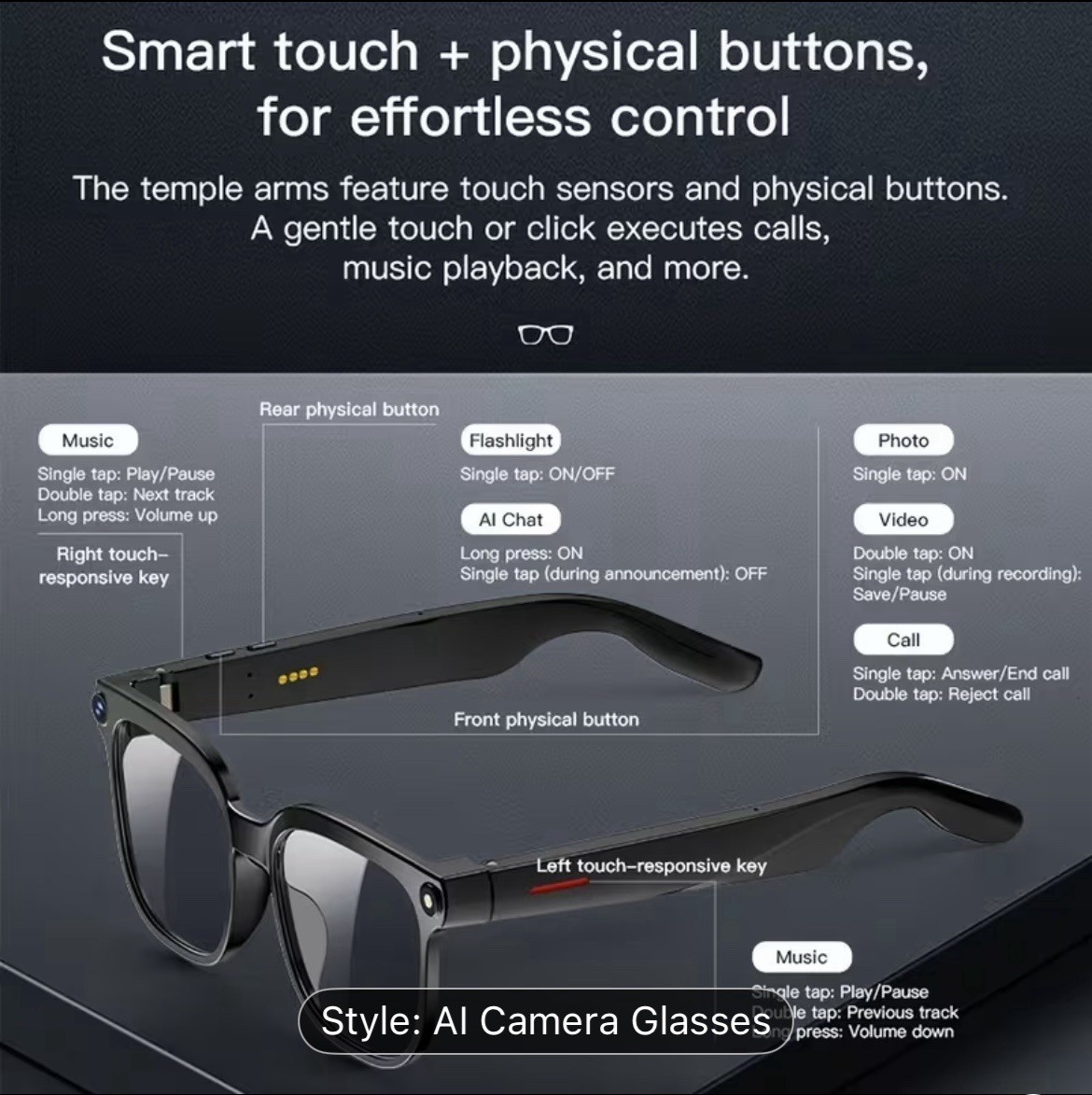 AI Smart Glasses Camera Bluetooth Call Voice Assistant Music Translate Men Women