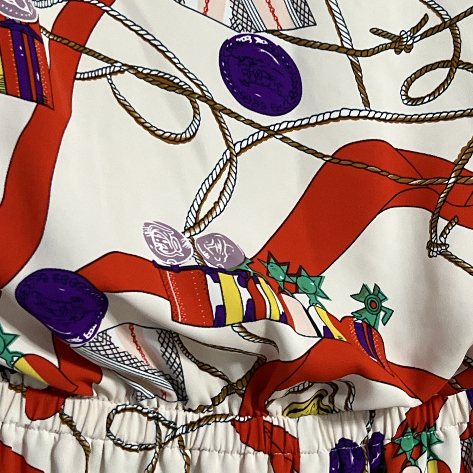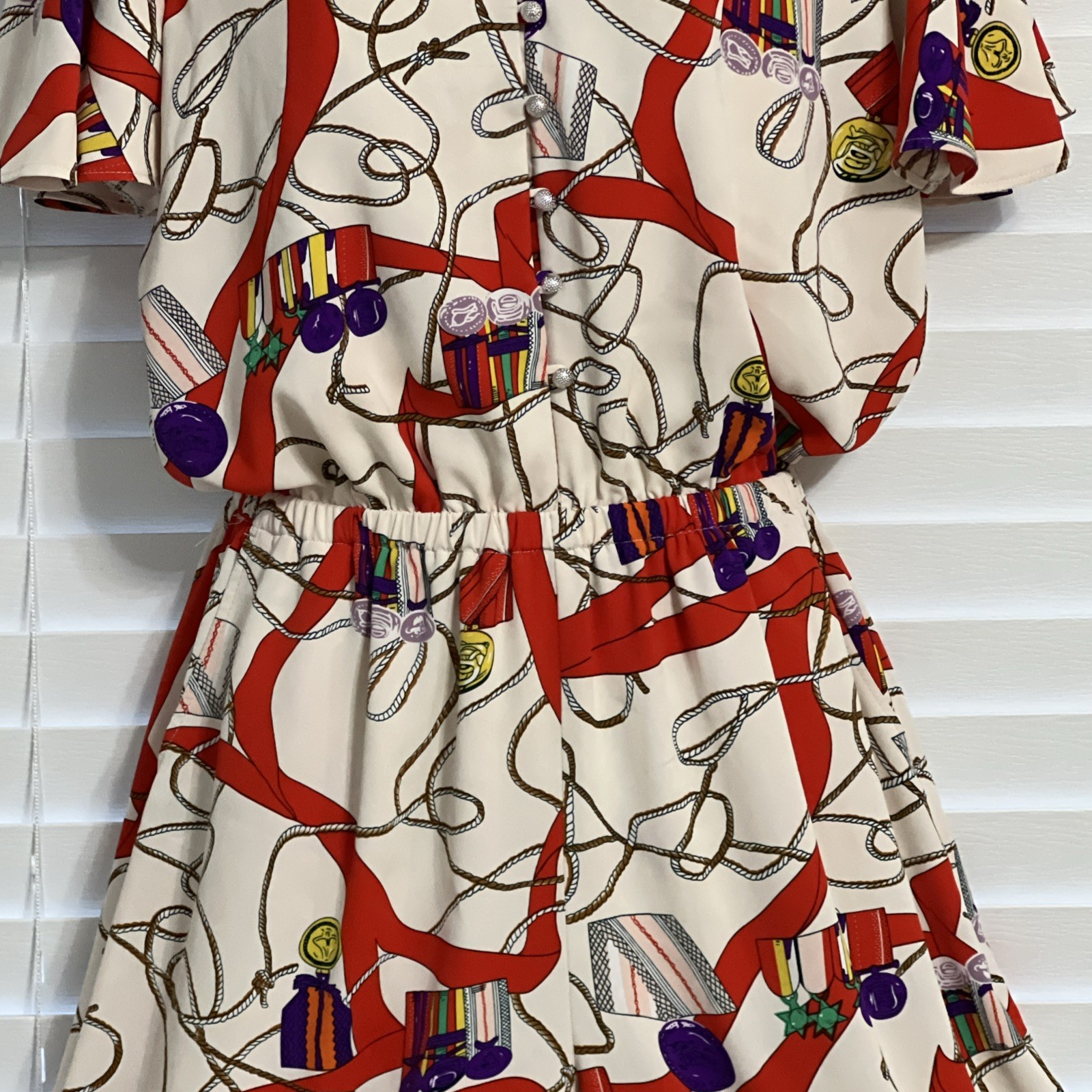 Vibrant Jumpsuit Classic Pattern Buttons Elastic Waist Flutter Sleeves Preloved