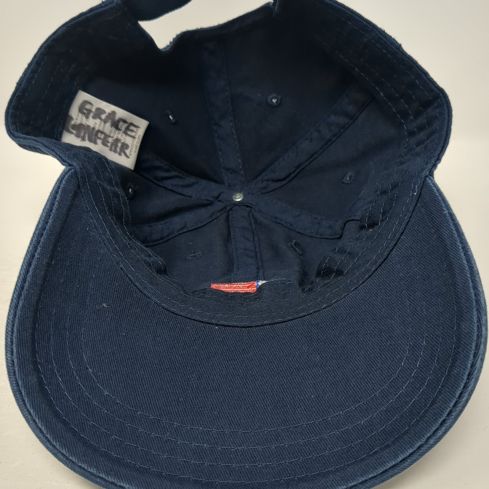 American Flag Slideback Baseball Cap Blue One Size Adjustable Embroidered Cotton