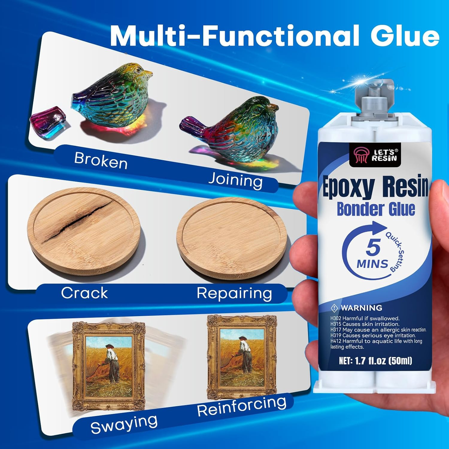 5 Minute Epoxy Glue 3.4Oz, Clear High Strength Adhesive 2-Part Epoxy with Mixing