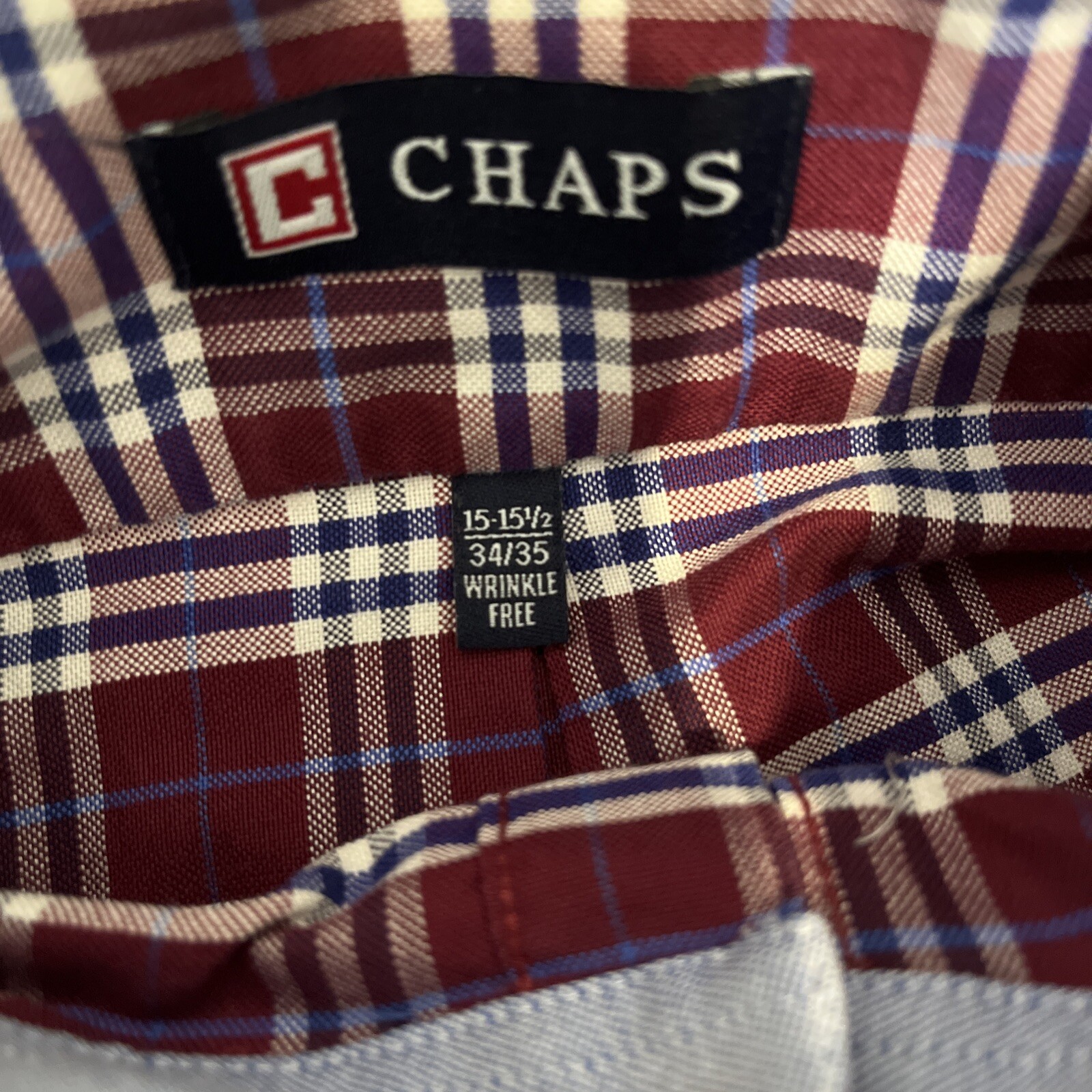 CHAPS Men s Classic Fit Oxford Shirt Plaid Wrinkle Free Neck 15-15.5 Size 34/35
