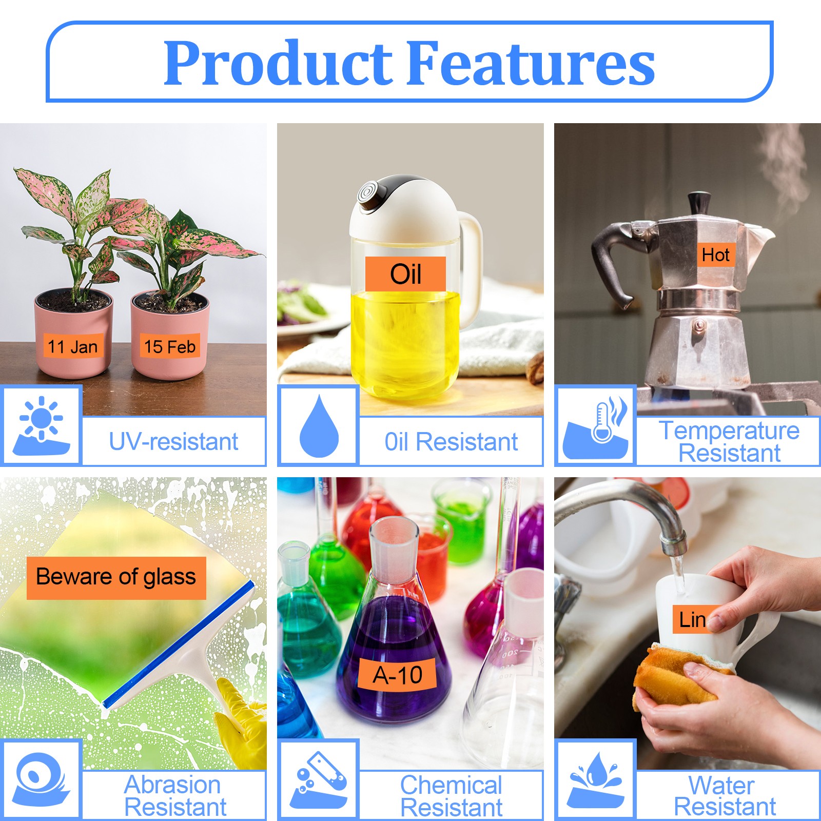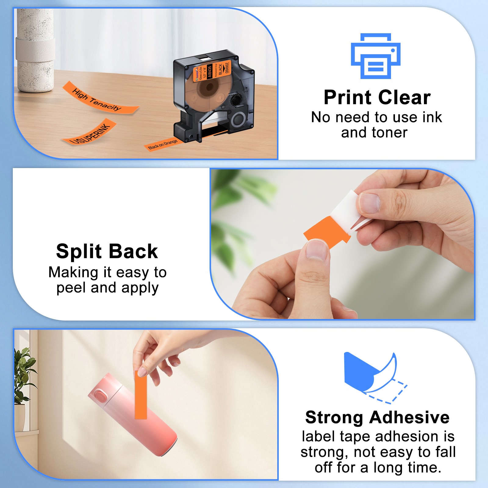 5PK Black on Orange 18435 Vinyl Label Tape 1/2 for Dymo Rhino 1000 5000 6000