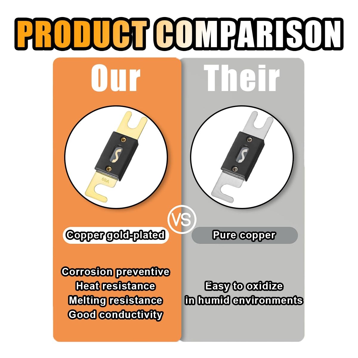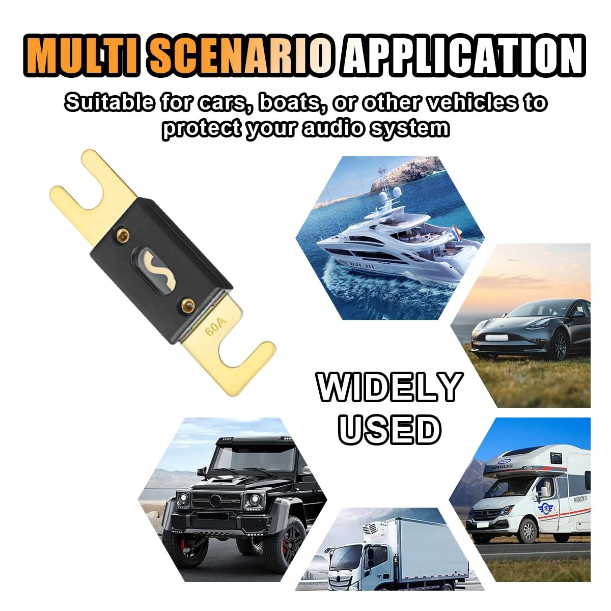 6PCS 60Amp/60A ANL Fuse, Blade Fuse for Marine Car Vehicle Audio and Video