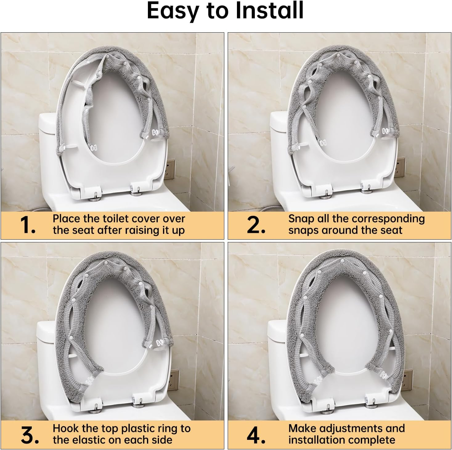 Toilet Seat Cover,Bathroom Soft Thicker Warmer with Snaps Fixed Stretchable
