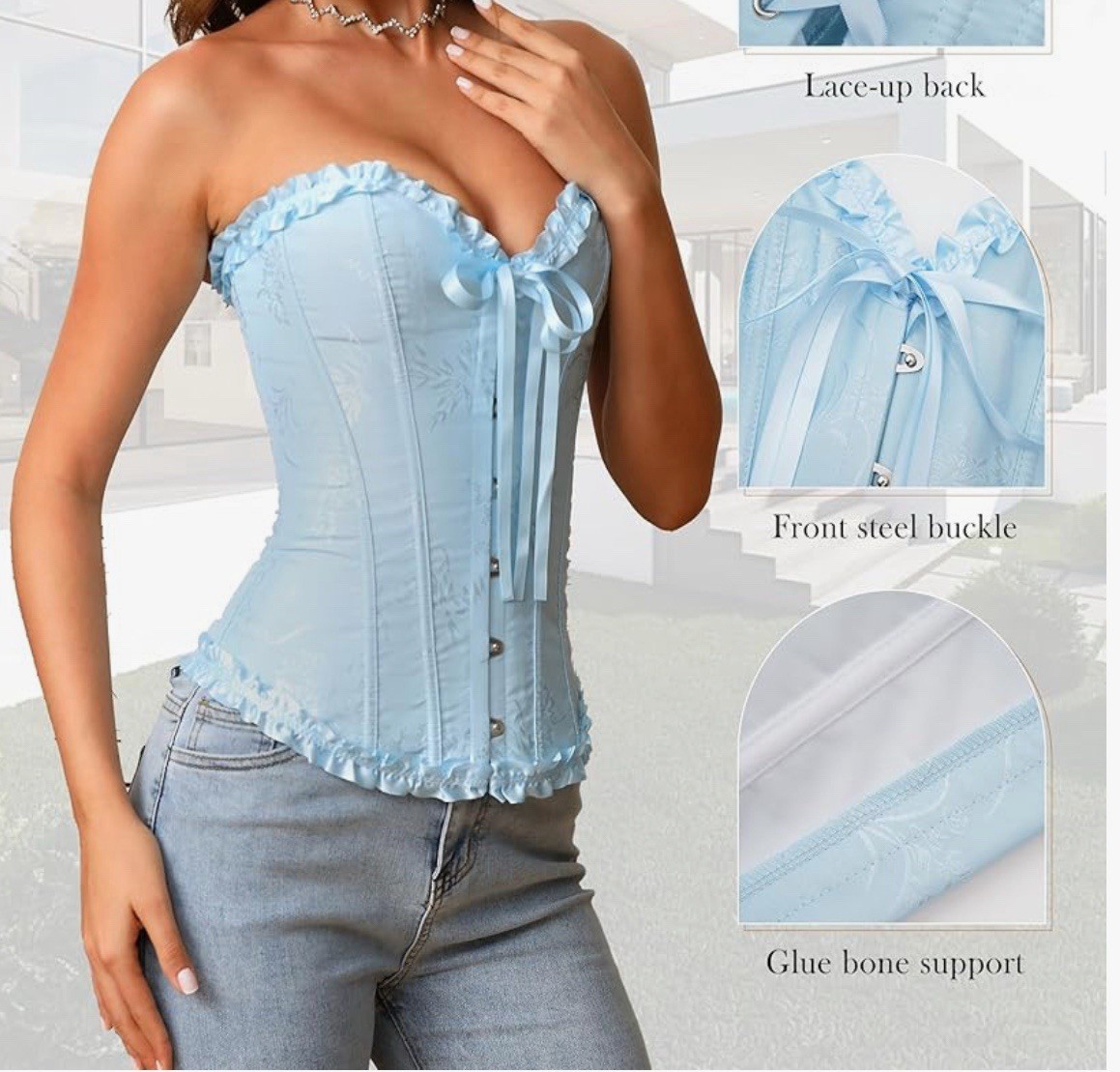 как выглядит Coquette Dream Baby Blue Corset Core Top Small Romantic Structured Feminine фото