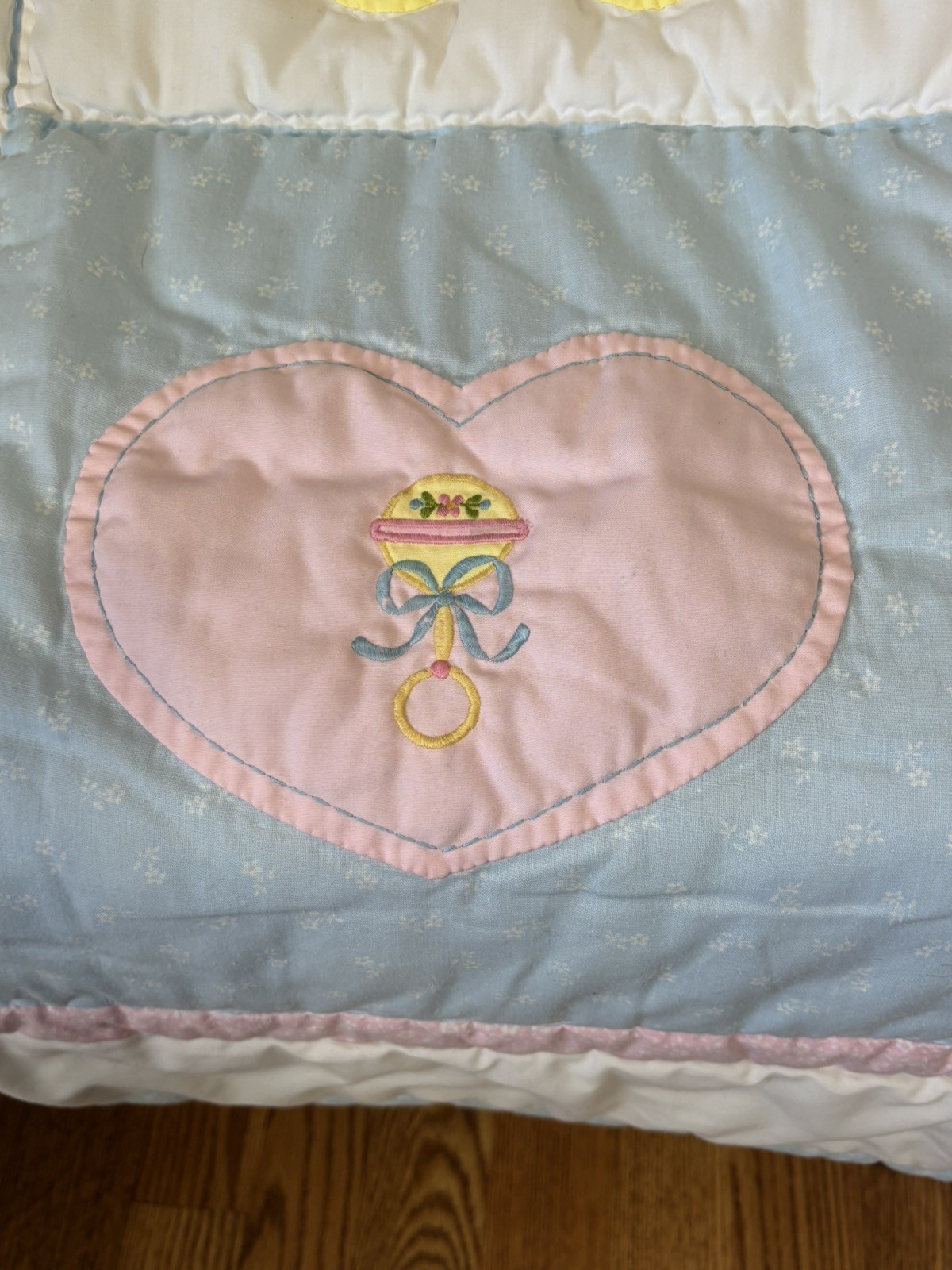 как выглядит House Of Hatten Vintage Teddy Bears Crib Quilt Pastel Blue/Pink /2 Piece фото