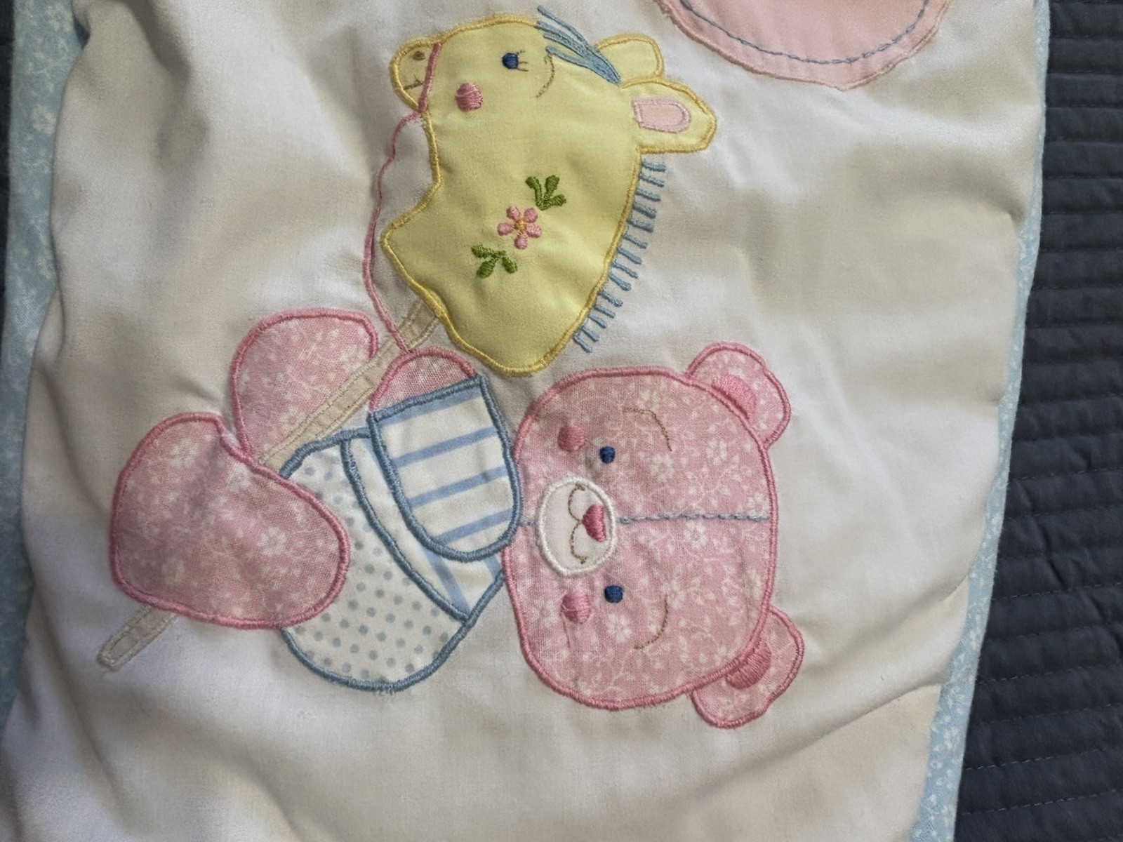 House Of Hatten Vintage Teddy Bears Crib Quilt Pastel Blue/Pink /2 Piece