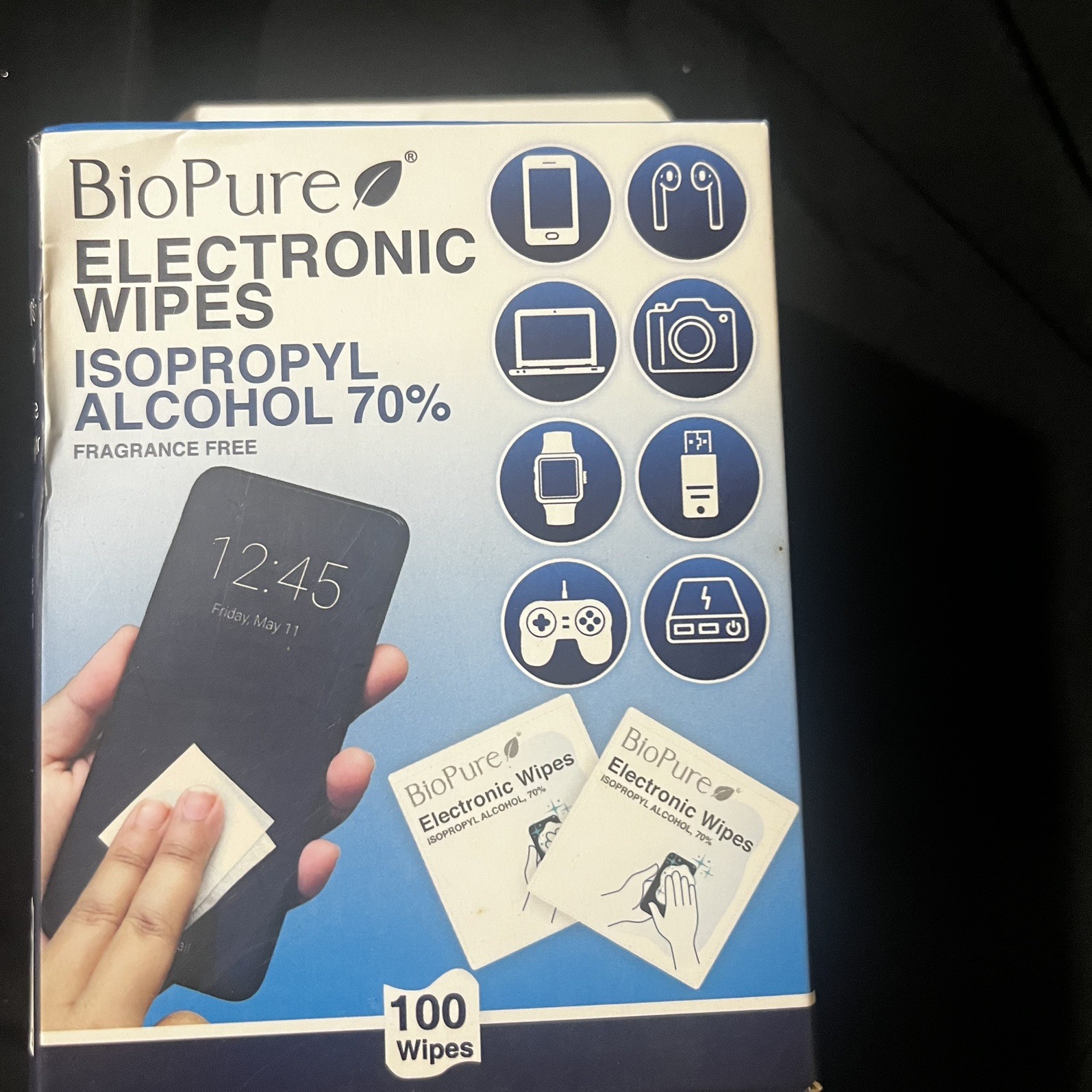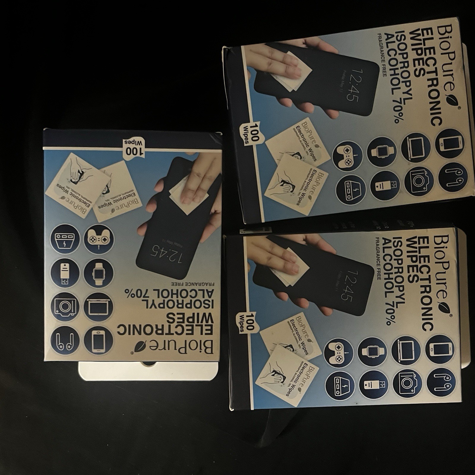 BioPure Electronic Wipes 100Pk Isopropyl Alcohol 70 - Fragrance Free -3 Boxes