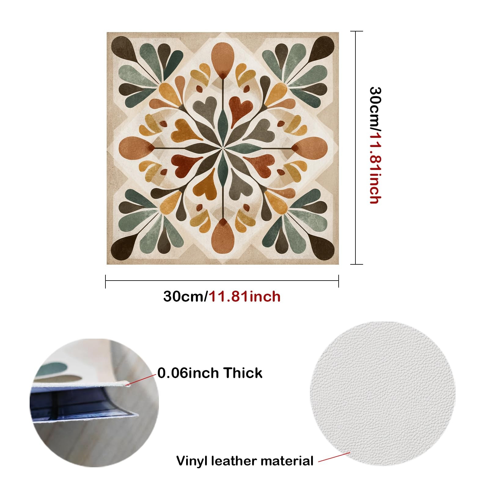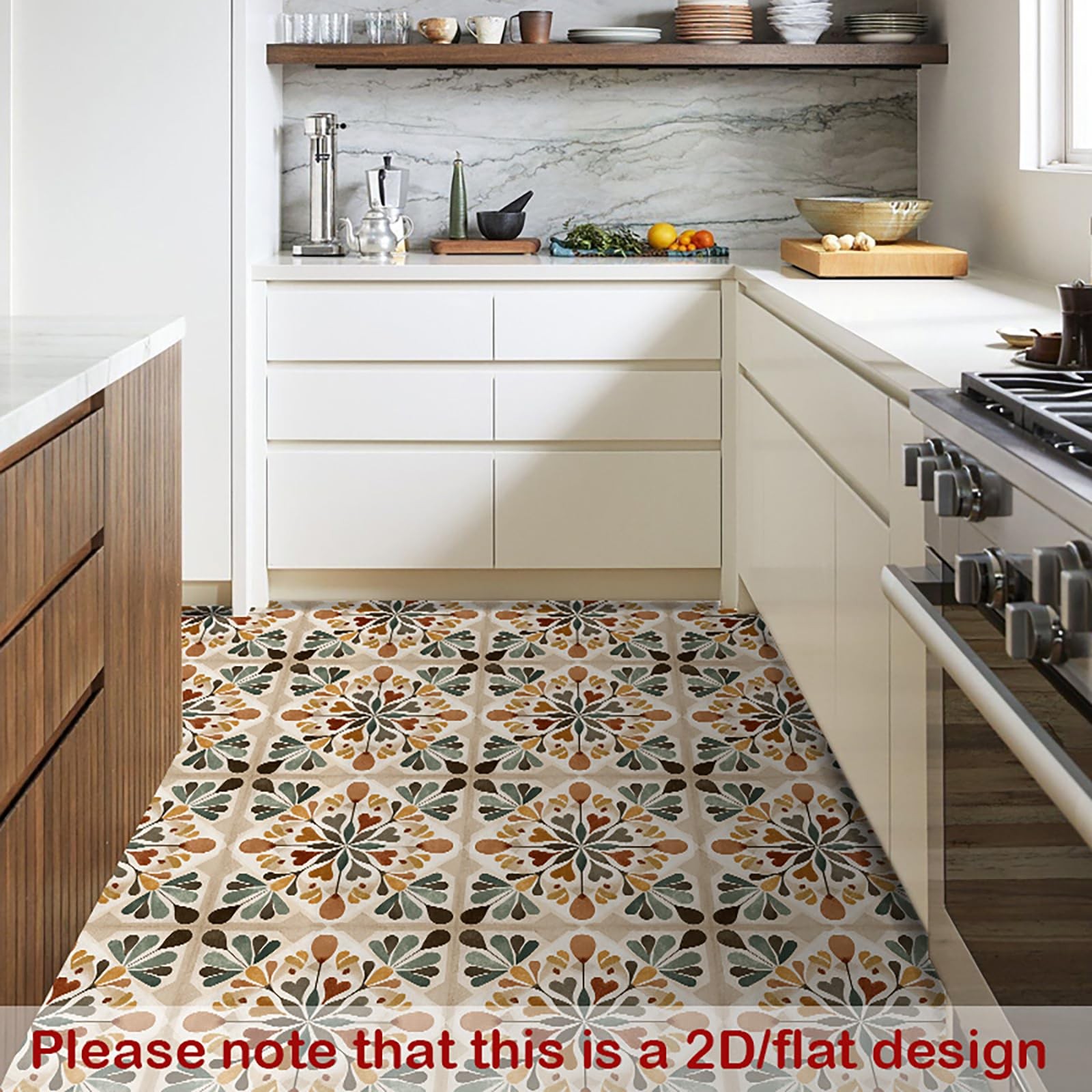 Nuxovilar Peel and Stick Vinyl Floor Tiles, 12x12 Inch Retro Geometric Floral...