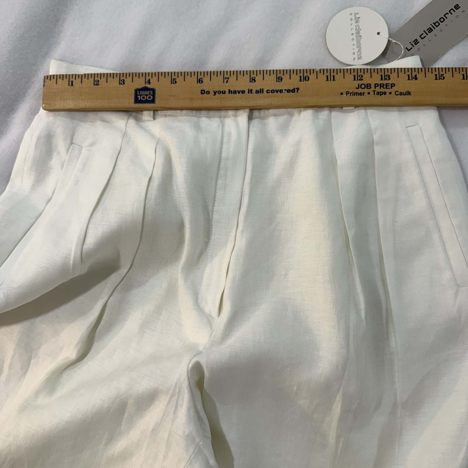 как выглядит NWT Vintage Liz Claiborne White 100 Linen Pleated High Waist Trousers 12 Lined фото