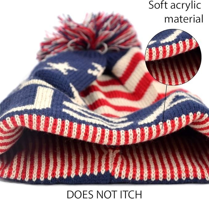 как выглядит Small and Medium Winter Hat Knit, Cuffed Beanie with Pom Pom, USA Flag Design фото