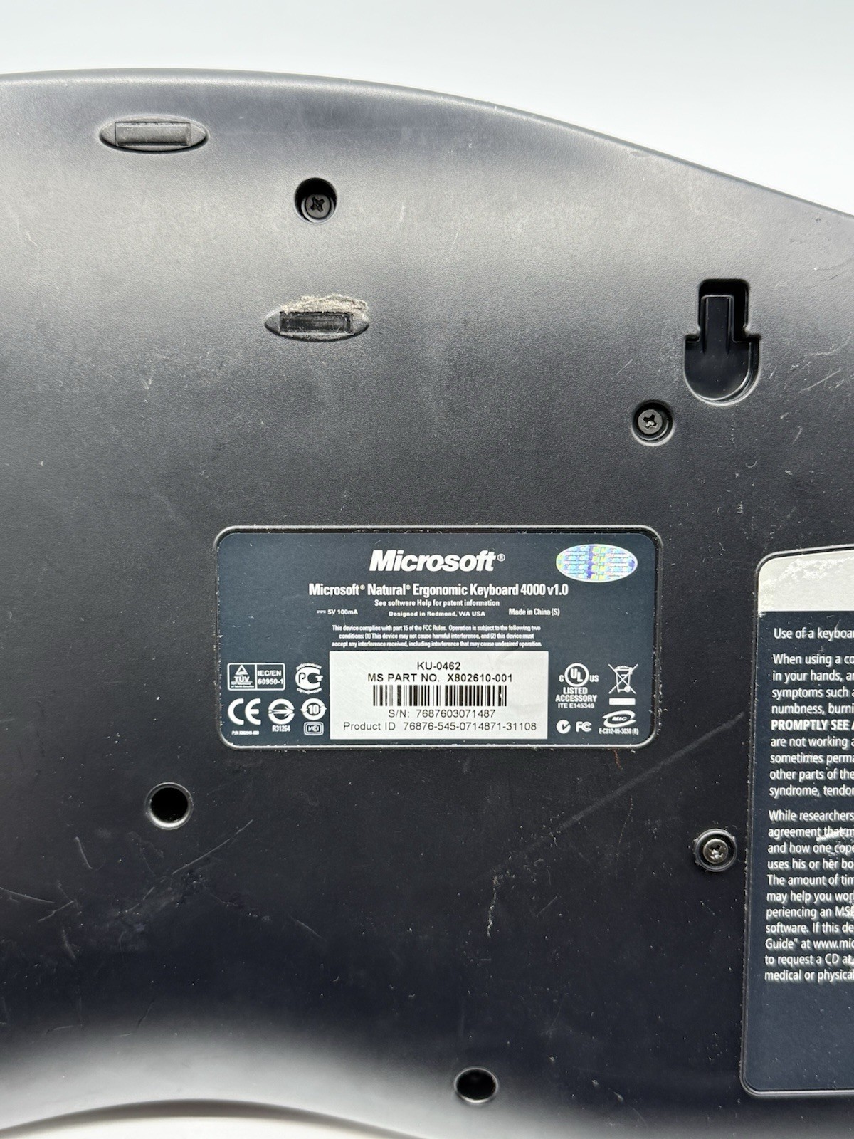 Microsoft Natural Ergonomic USB Wired Keyboard 4000 v1.0 KU-0462 Tested