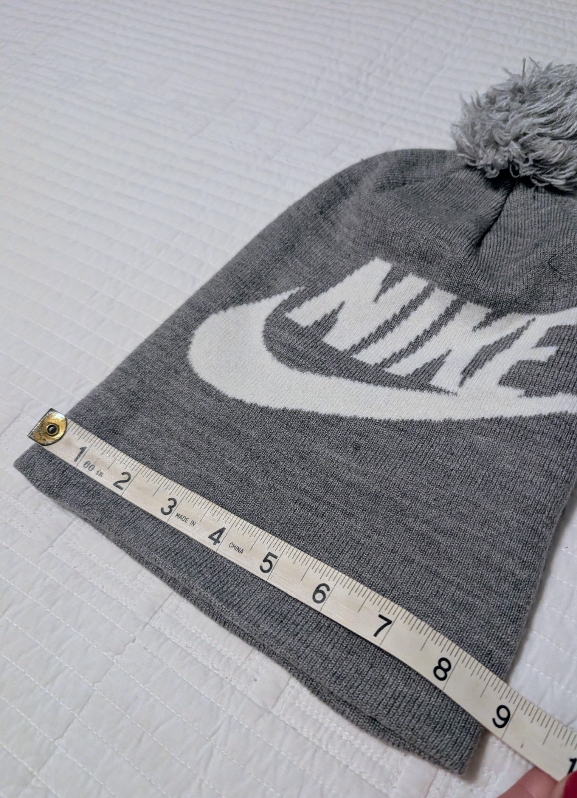 как выглядит Lot Of 2 Nike Air Swoosh Pom Beanie Winter Hats - Gray Pink Youth Snow Ski фото