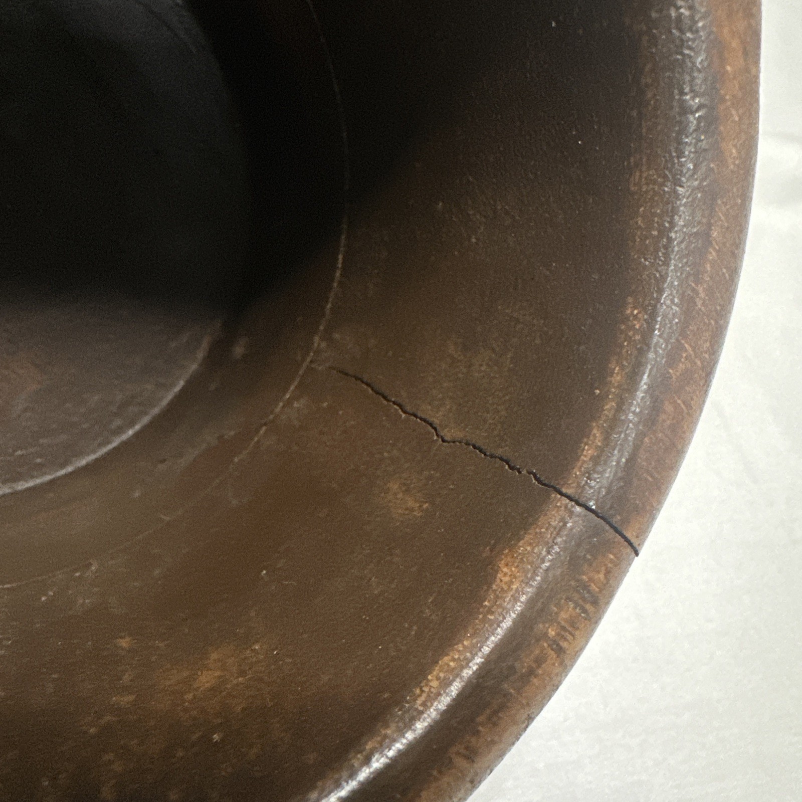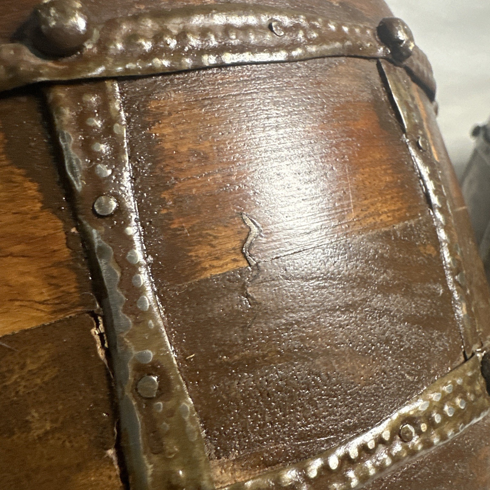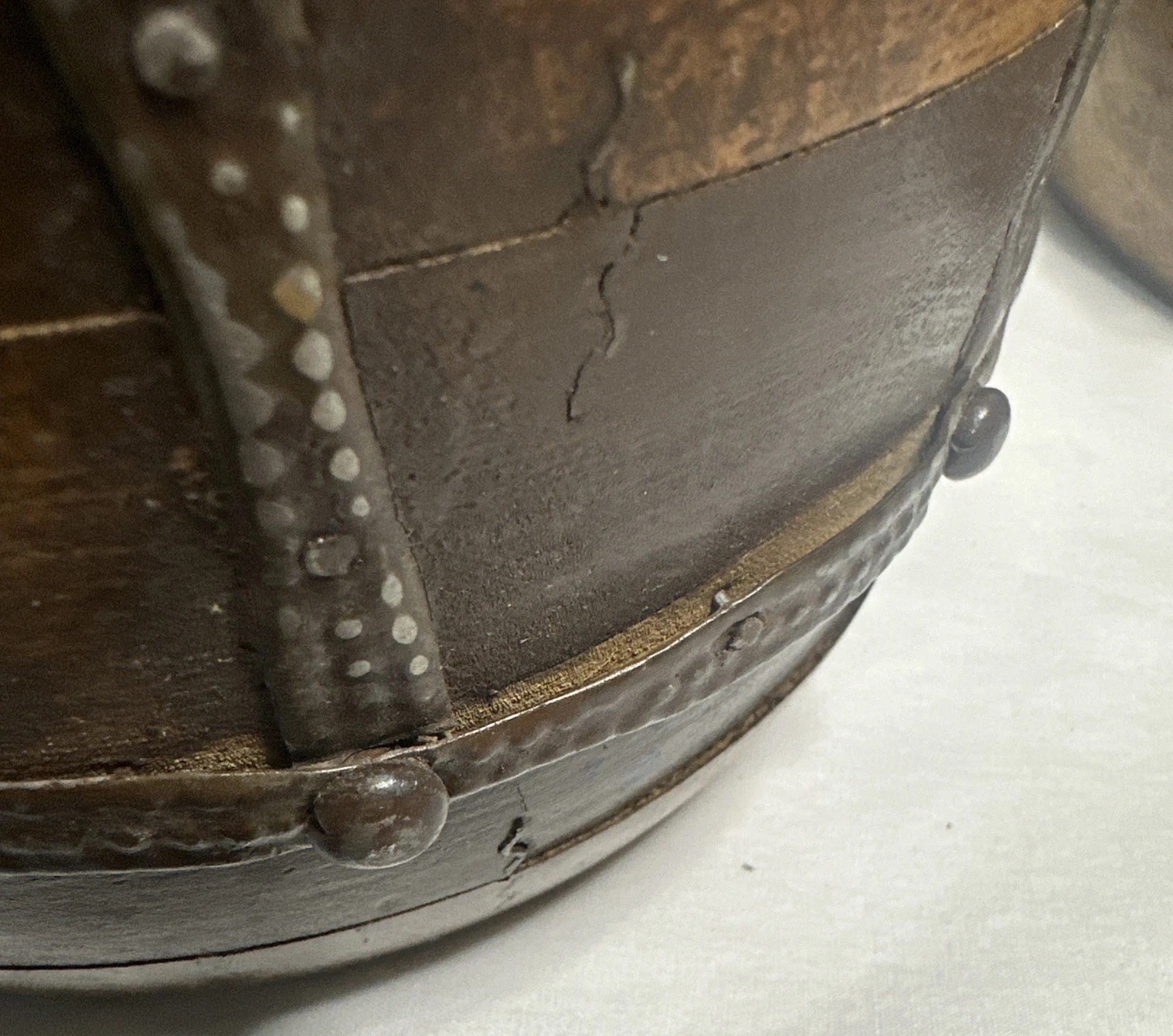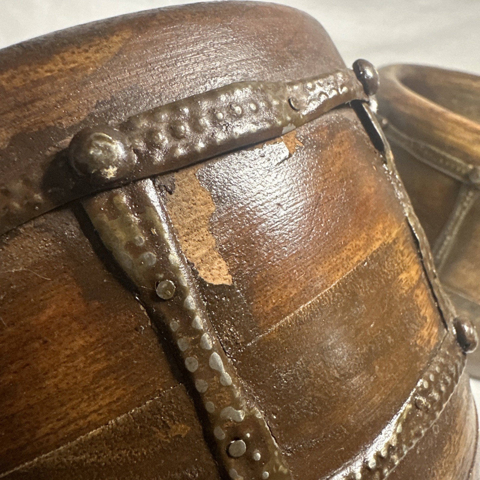 Set of 3 Stacking Wood Bowls Metal Bands Accents India Carved Heavy Rustic Pot