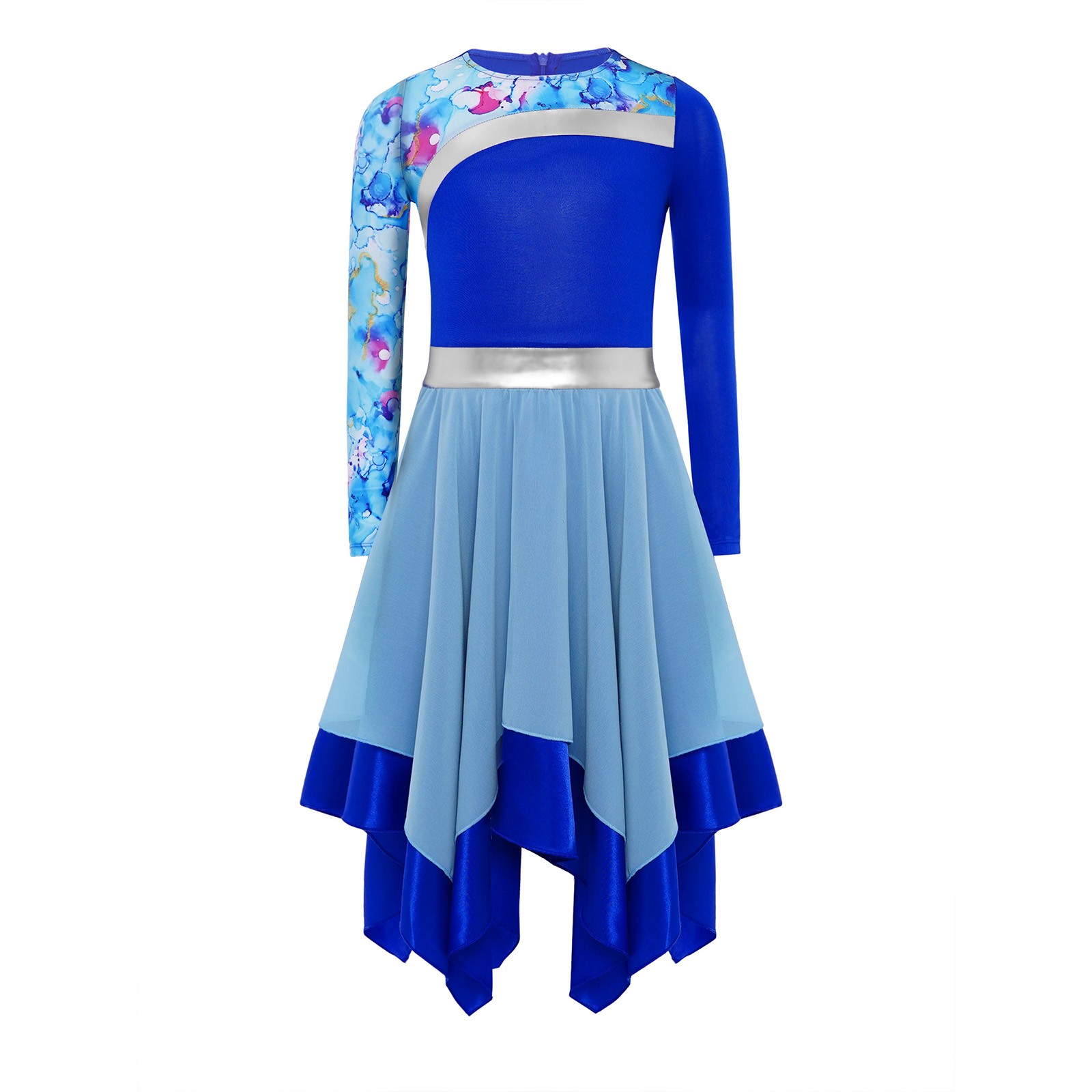 как выглядит Girls Costume Contemporary Dress Dance Dancewear Tunic Color Block Party Robe фото