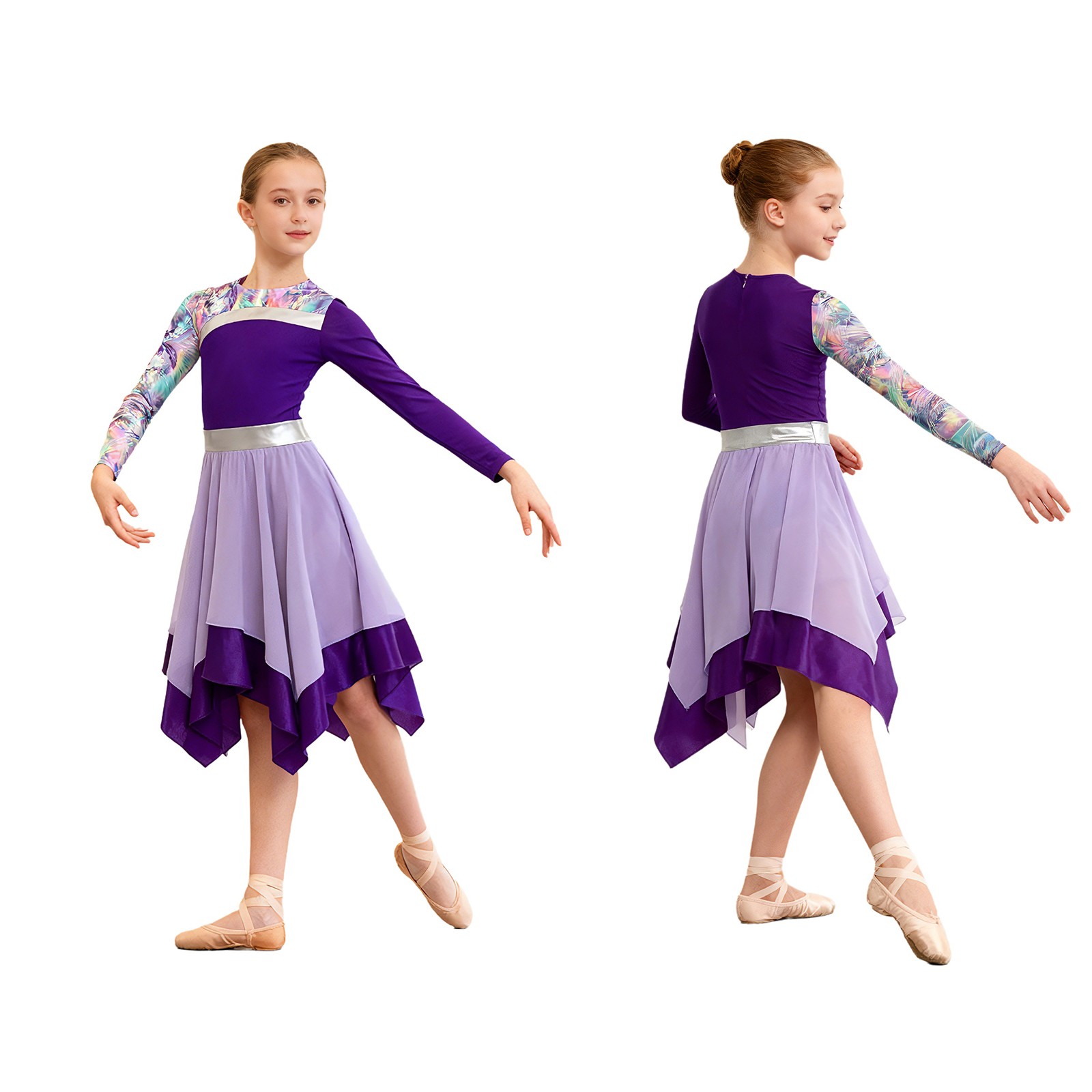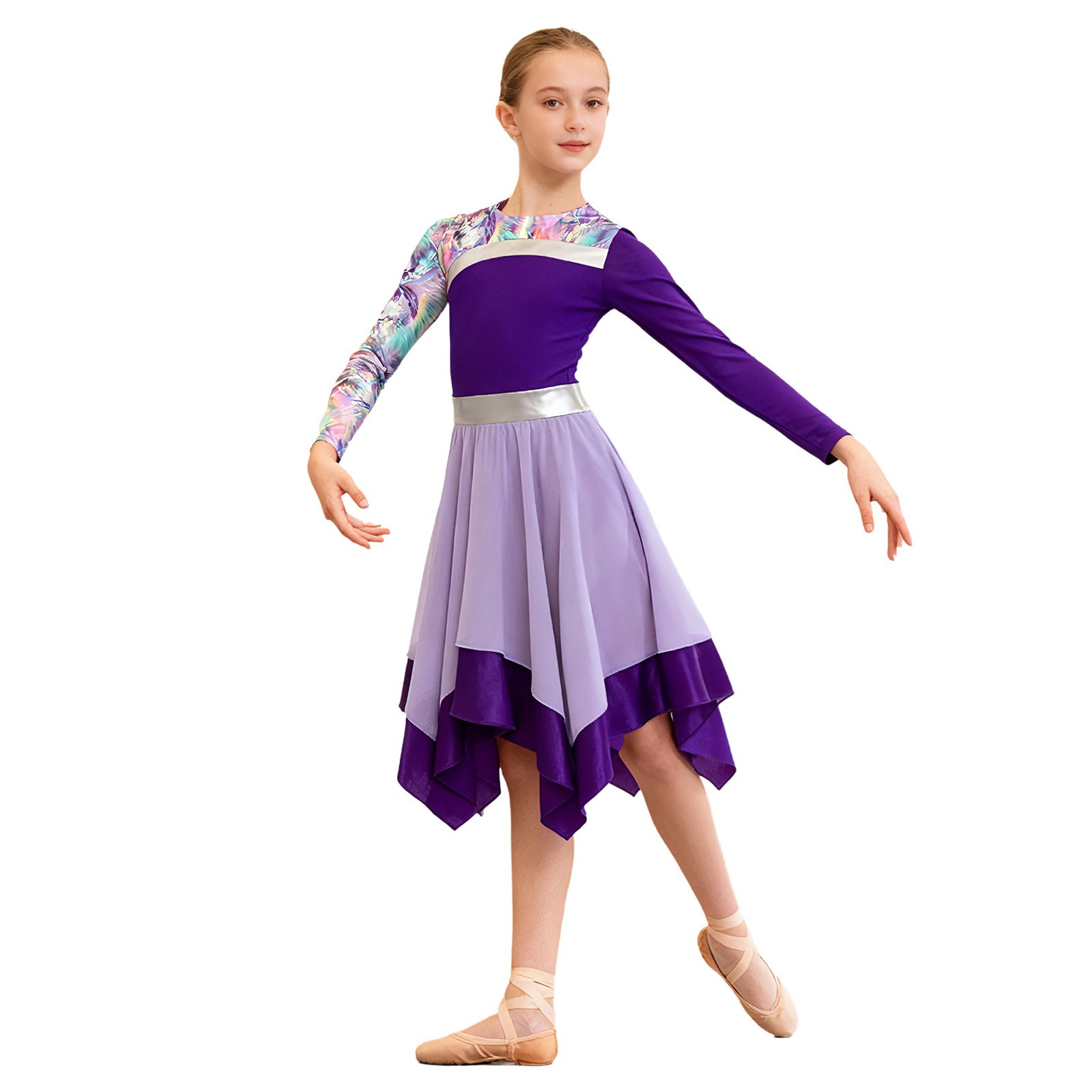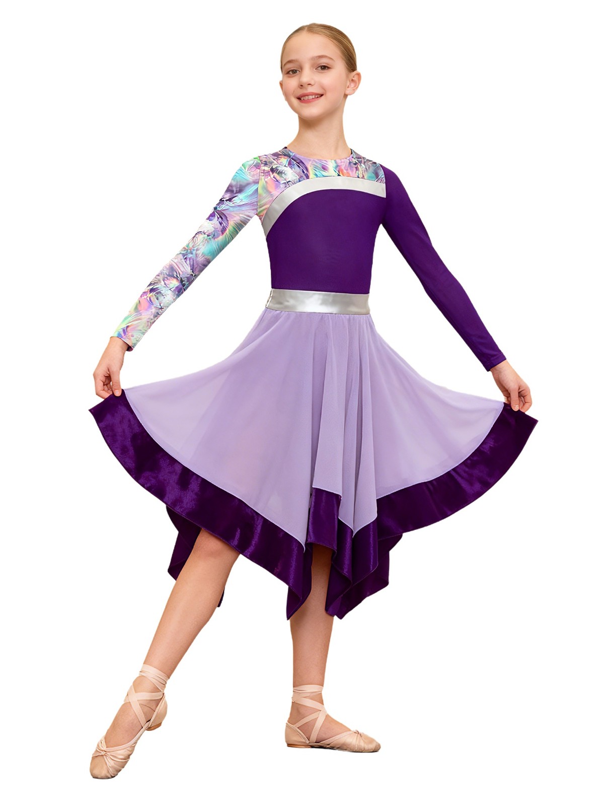 как выглядит Girls Dancewear Praise Costume Robe Dress Worship Stylish Printed Gown Tunic фото